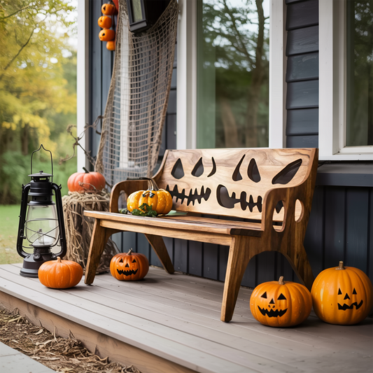 Rustic Solid Wood Halloween Bench For Spooky Outdoor Home Decor