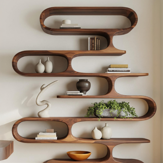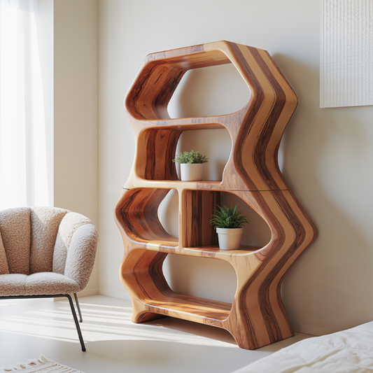 Organic Sculptural Bookshelf With Curved Design For Living Room