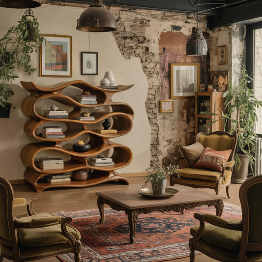 Organic Modern Bookshelf With Carved Design For Living Room And Home Library