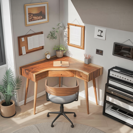Mid Century Corner Wooden Desk With Drawer For Home Office Or Study