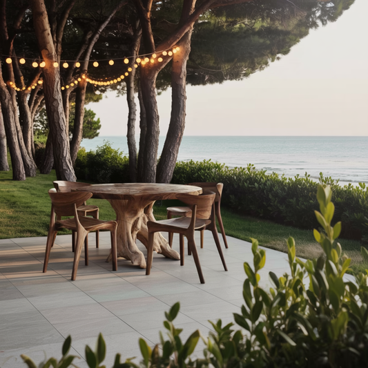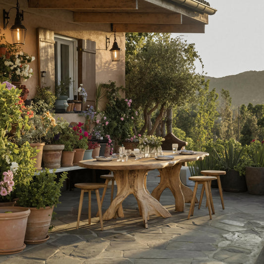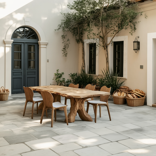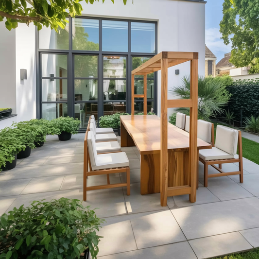 Mid Century Wooden Dining Table For A Warm Outdoor Space