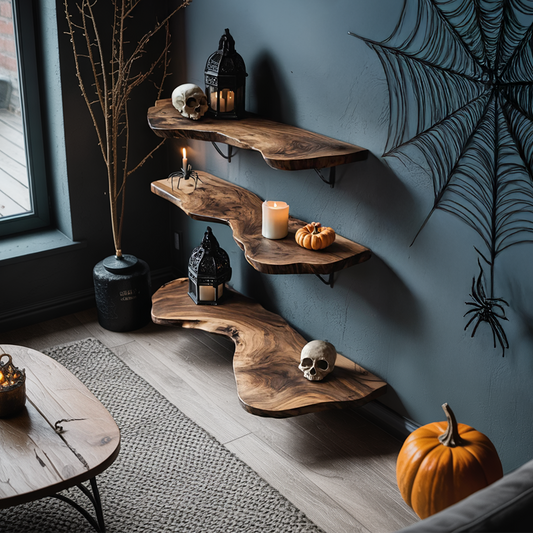 Handcrafted Live Edge Floating Shelf For Furniture Decor Halloween Inspiration