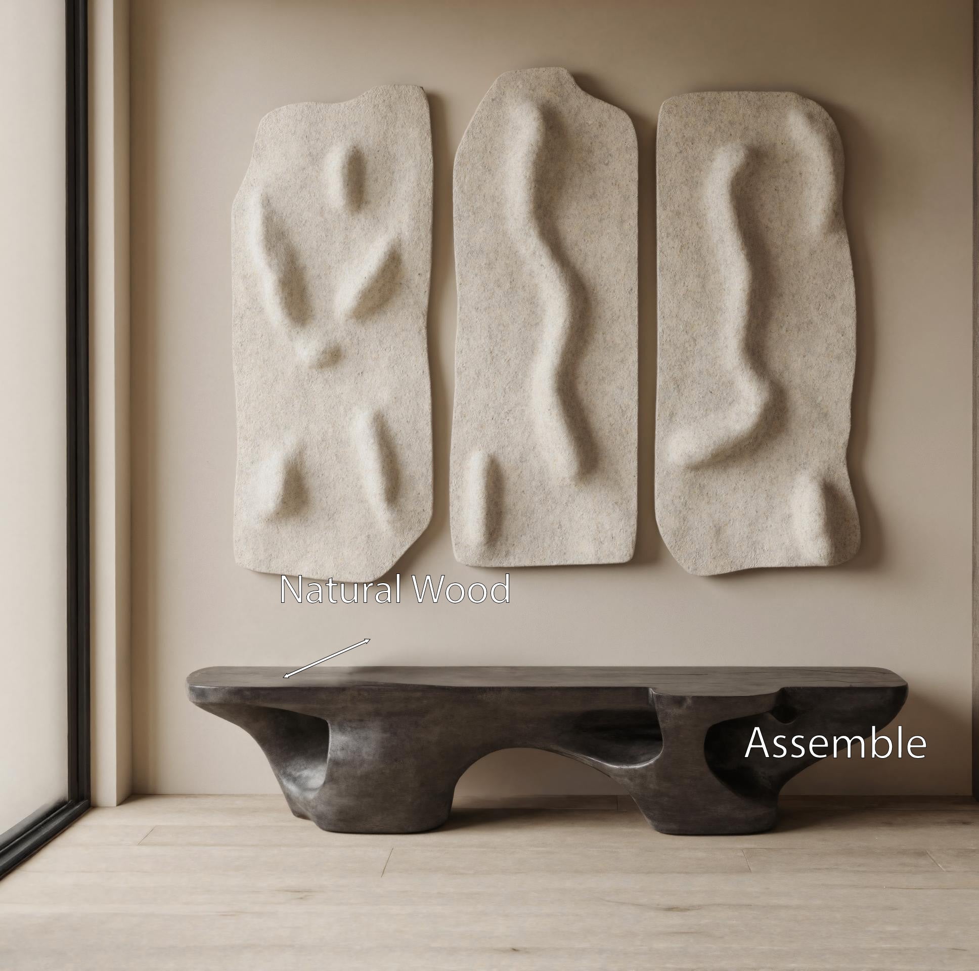 This bench features a bold, sculptural profile with deep carved cutouts that give it an architectural presence. The flowing design highlights the natural texture and weight of the material, while maintaining a balanced form that can serve as seating, display, or a statement accent. With its contemporary elegance, it enhances interiors that value both creativity and functionality.