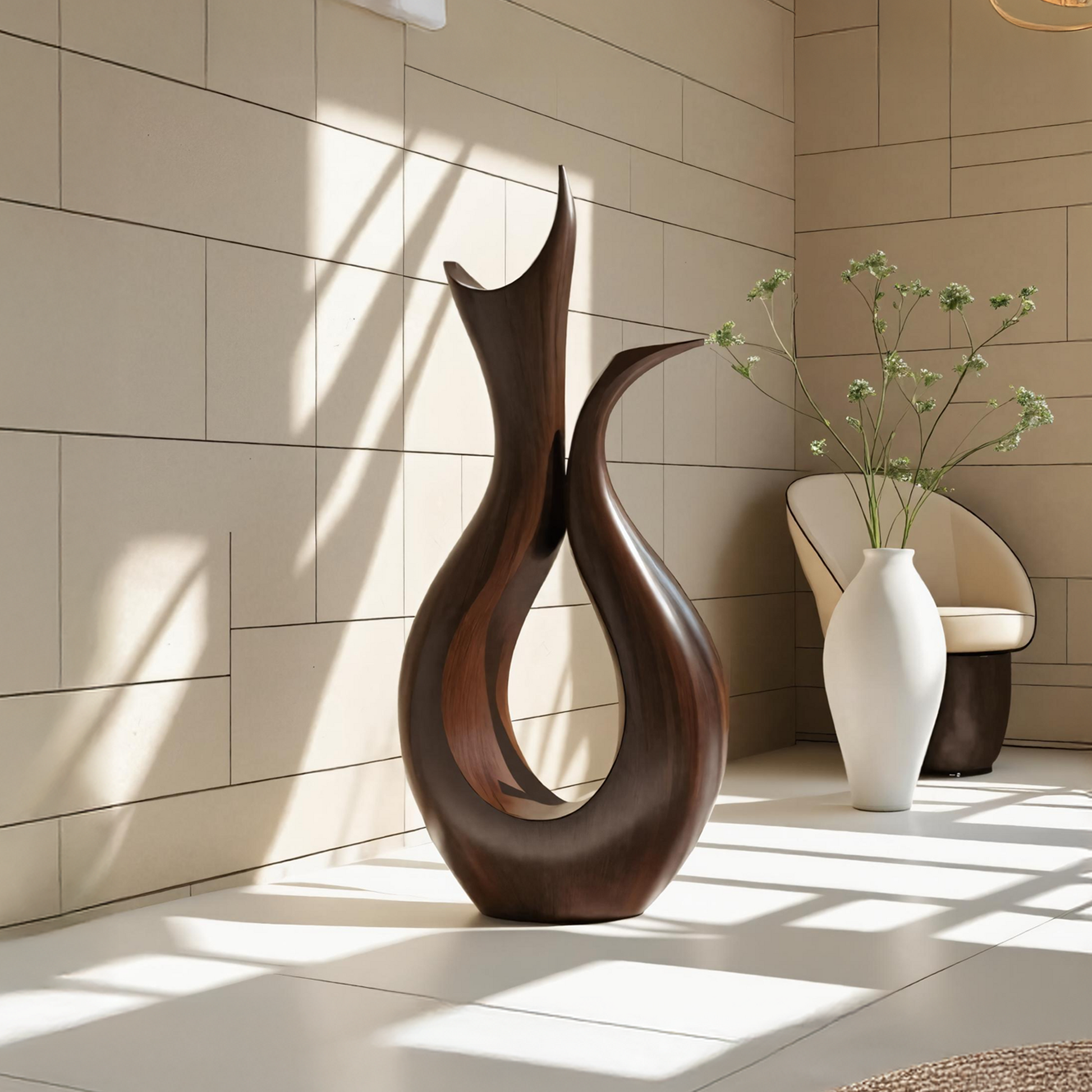Inspired by the flowing movement of flames and the organic forms found in nature, this abstract wooden sculpture is more than just décor - it’s a visual statement. Its fluid, twisting curves evoke motion and harmony, creating a sense of energy that subtly transforms any space. Whether used as a focal point or an accent piece, it brings life and depth to minimalist, modern, and contemporary interiors.