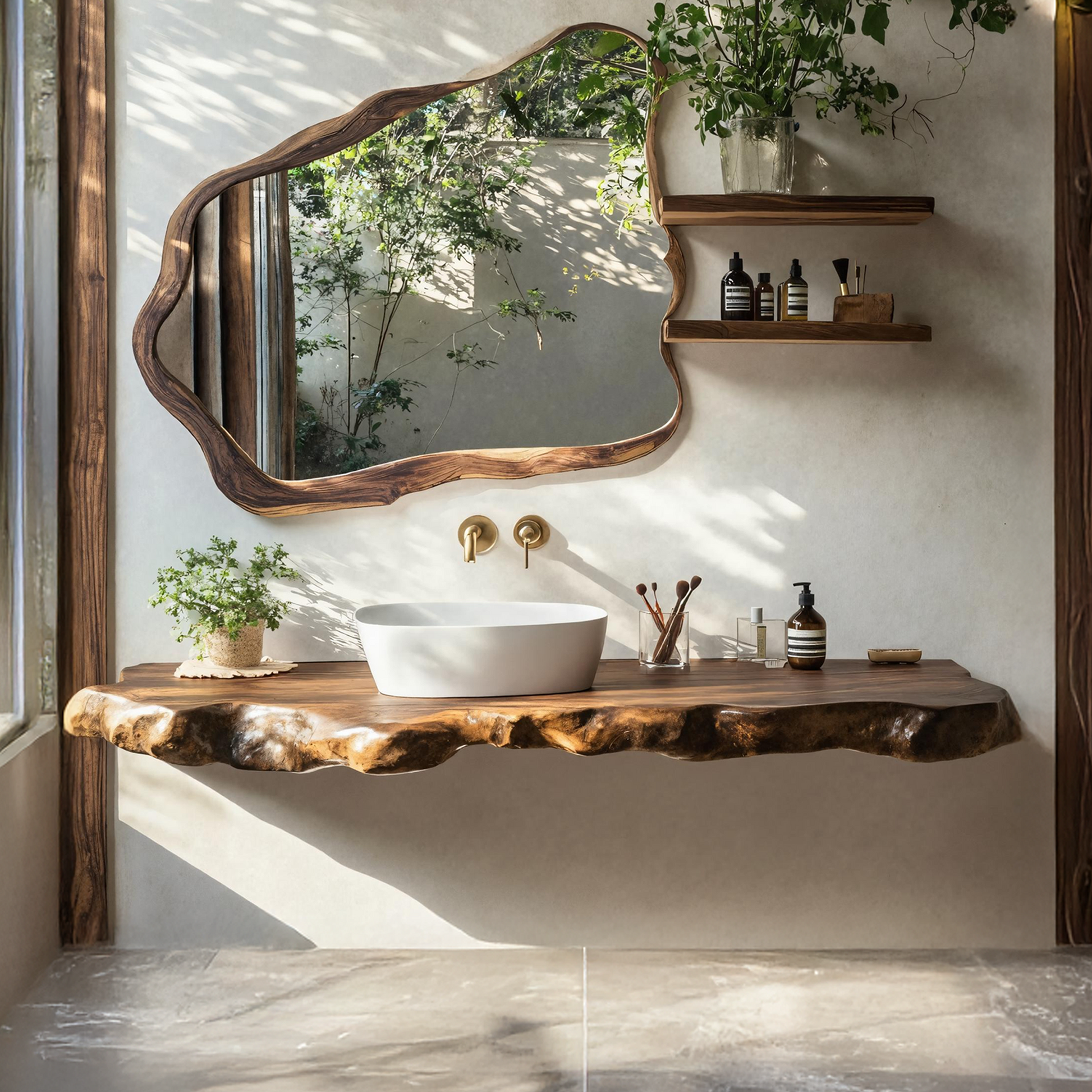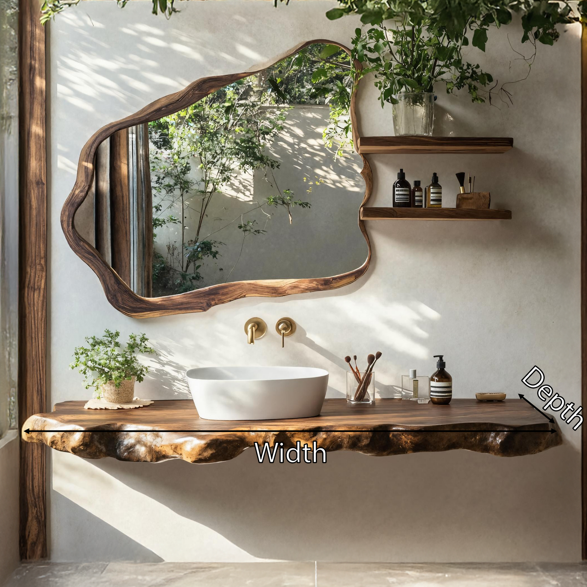 The live edge finish highlights the natural grain and character of the wood, creating a rustic yet elegant look. Each piece is designed to stand out as a unique focal point.