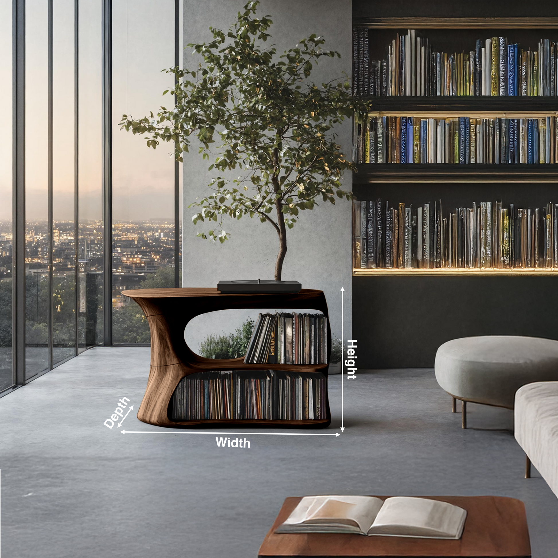 Crafted with a sleek, minimalist cube profile, this record stand enhances both modern and traditional interiors. The natural wood tones and unique grain patterns of each piece create a one-of-a-kind design, making it a stylish and functional addition to your space.