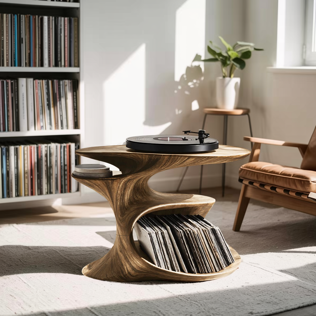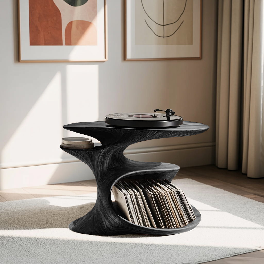 Meticulously designed to complement a wide range of interior aesthetics, this record player stand features a sleek, minimalist silhouette that naturally enhances your environment. Whether showcased as the heart of your music corner or subtly placed in a modern bedroom, it instantly elevates the space. More than a functional unit, it’s an artistic expression of your passion for sound and style.