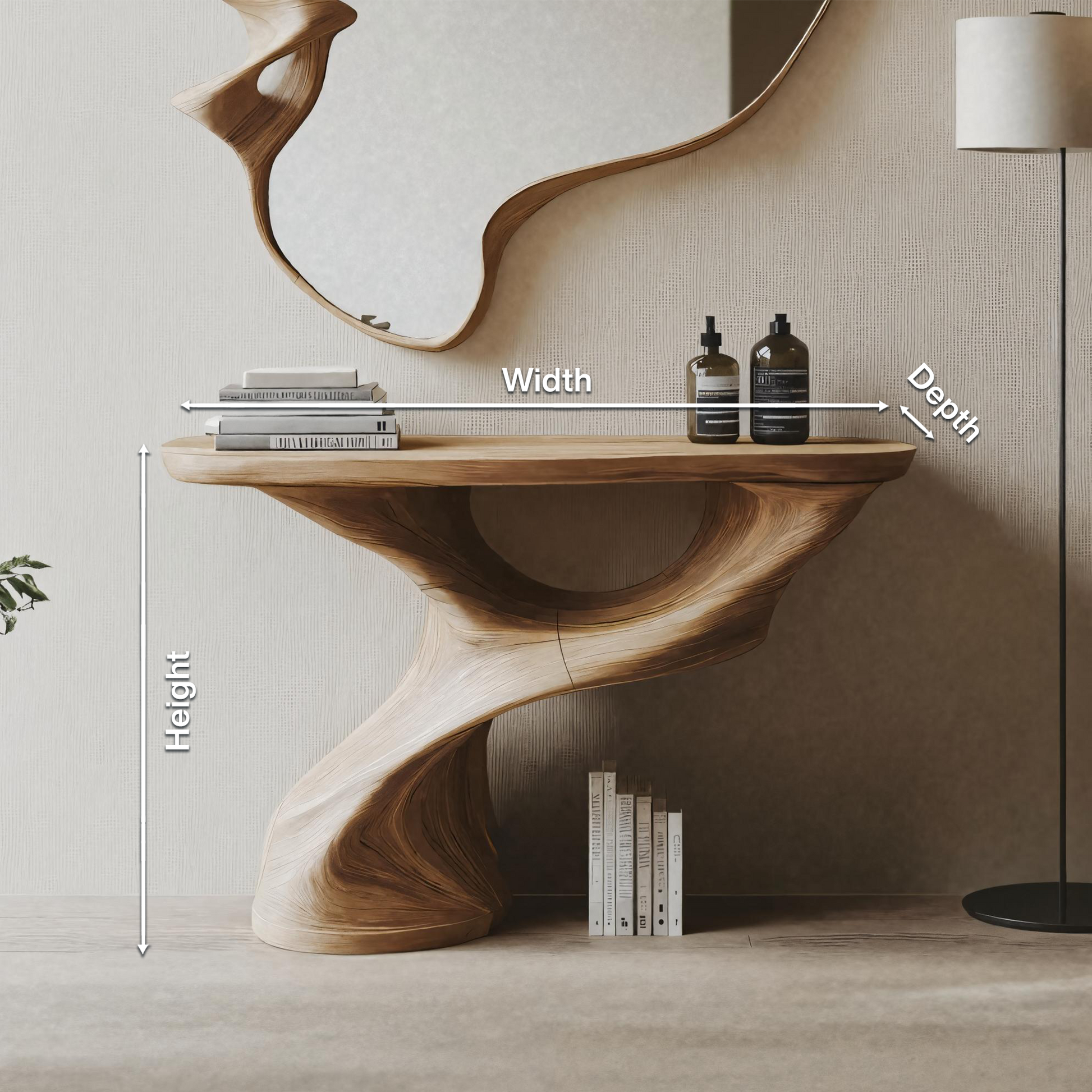 Crafted from premium solid wood, each console table highlights the organic elegance of natural materials. Please note that the wood grain variations depicted in the images are for reference only, as each table is one-of-a-kind with its own distinct grain and pattern. This individuality ensures you’re investing in a truly unique piece of furniture that adds a personal touch to your home.