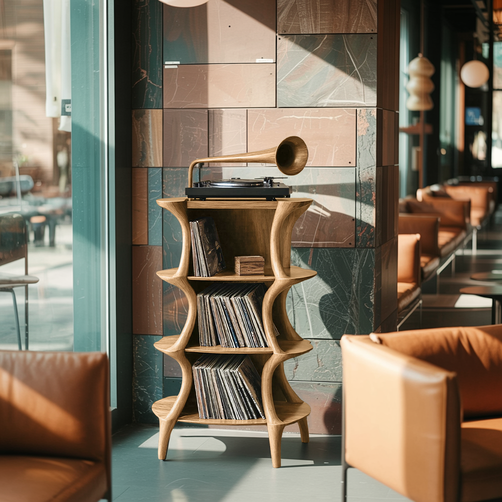 Crafted with a sleek, minimalist cube profile, this record stand enhances both modern and traditional interiors. The natural wood tones and unique grain patterns of each piece create a one-of-a-kind design, making it a stylish and functional addition to your space.