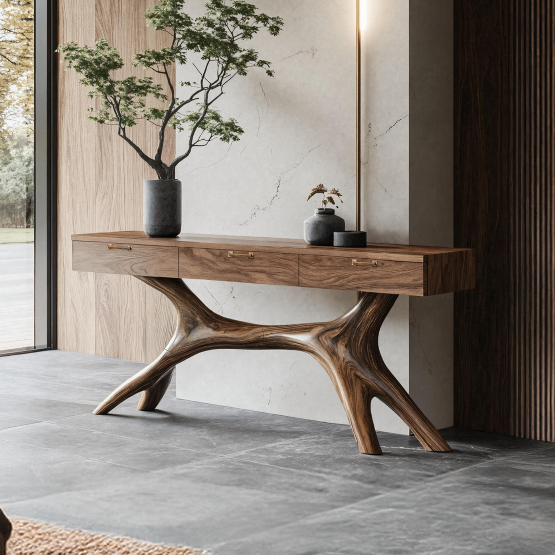 Crafted from premium solid wood, each console table highlights the organic elegance of natural materials. Please note that the wood grain variations depicted in the images are for reference only, as each table is one-of-a-kind with its own distinct grain and pattern. This individuality ensures you’re investing in a truly unique piece of furniture that adds a personal touch to your home.