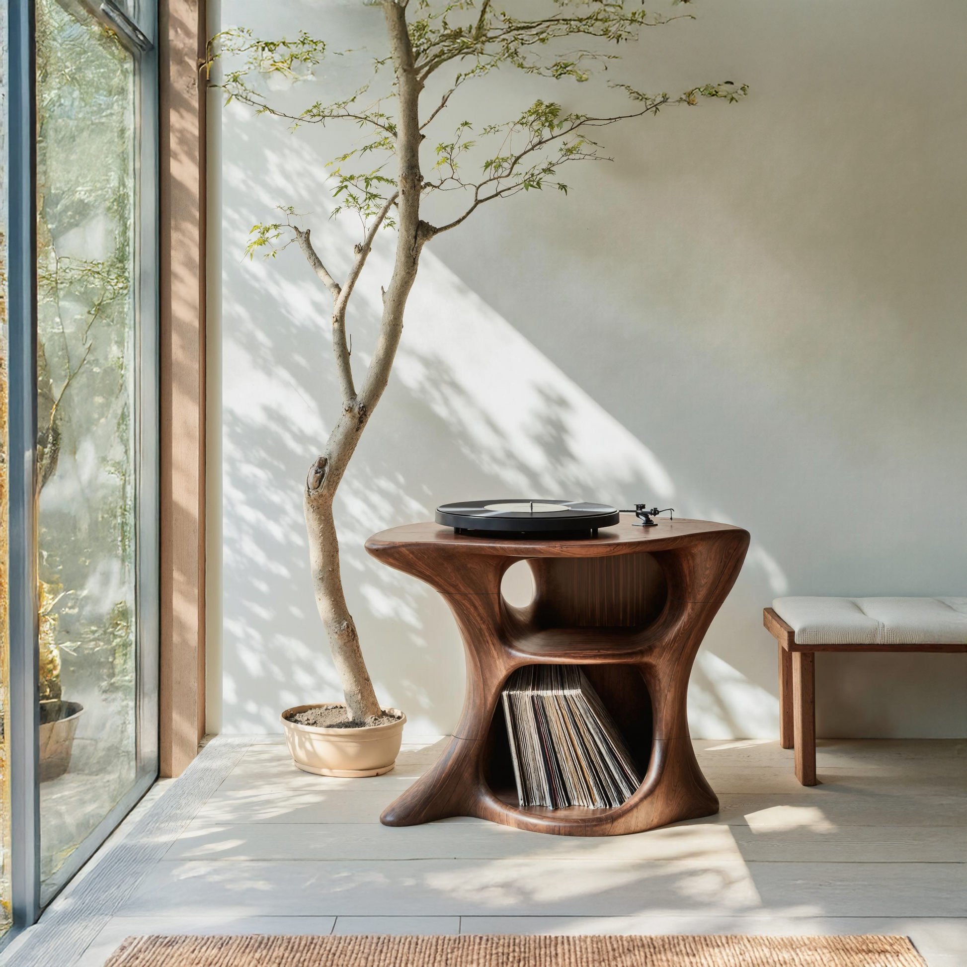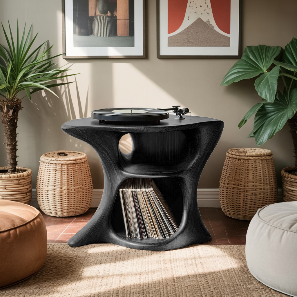 Meticulously designed to complement a wide range of interior aesthetics, this record player stand features a sleek, minimalist silhouette that naturally enhances your environment. Whether showcased as the heart of your music corner or subtly placed in a modern bedroom, it instantly elevates the space. More than a functional unit, it’s an artistic expression of your passion for sound and style.