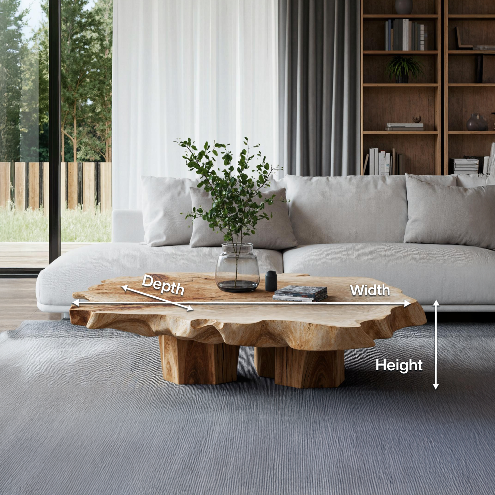 Note: Each table is handmade from natural wood, so slight variations in color, grain pattern, and texture are to be expected, making every piece truly one-of-a-kind.