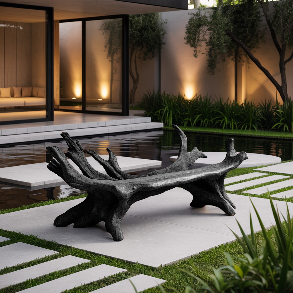 Designed for both indoor coziness and outdoor tranquility, the bench brings depth, warmth, and usefulness to any space. It works beautifully as a dramatic entry bench, a peaceful garden sculpture, or a welcoming seat on your porch. Optional features such as backrests or armrests can be added for enhanced style and comfort.