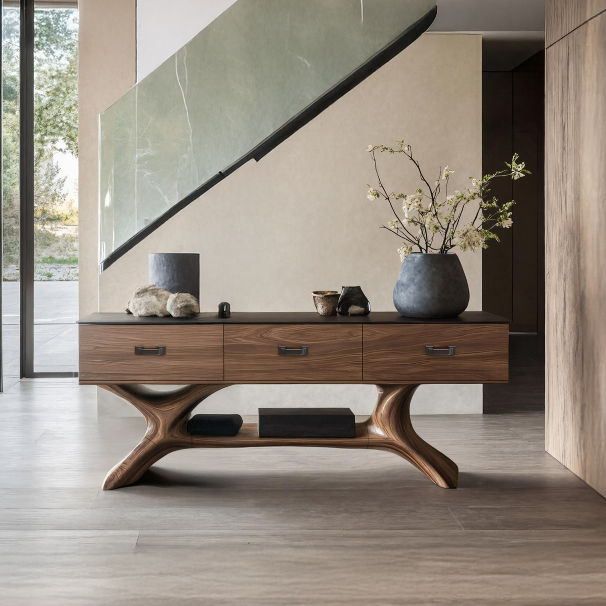 Crafted from premium solid wood, each console table highlights the organic elegance of natural materials. Please note that the wood grain variations depicted in the images are for reference only, as each table is one-of-a-kind with its own distinct grain and pattern. This individuality ensures you’re investing in a truly unique piece of furniture that adds a personal touch to your home.