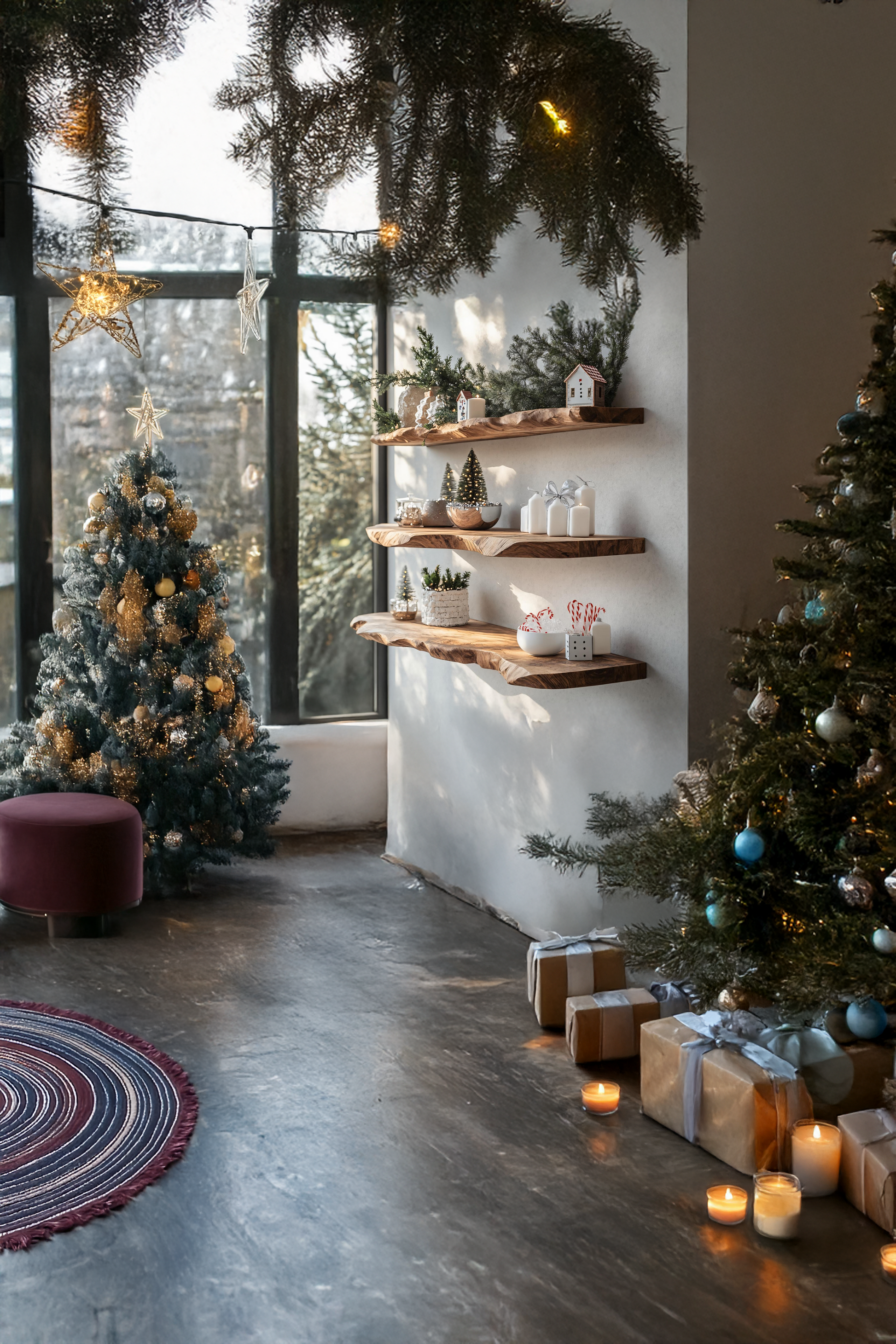 - Displaying ornaments, candles, or Christmas accents in the living room or entryway