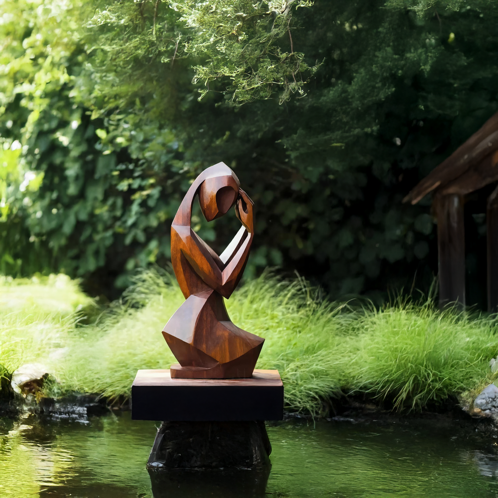 Elevate your outdoor setting with the Mid Century Abstract Sculpture For Modern Outdoor Space Featuring sleek curves and a timeless wooden finish, this piece blends mid-century elegance with contemporary artistry. Its abstract form adds sophistication and visual intrigue, making it an eye-catching centerpiece for gardens, patios, or modern outdoor living spaces.