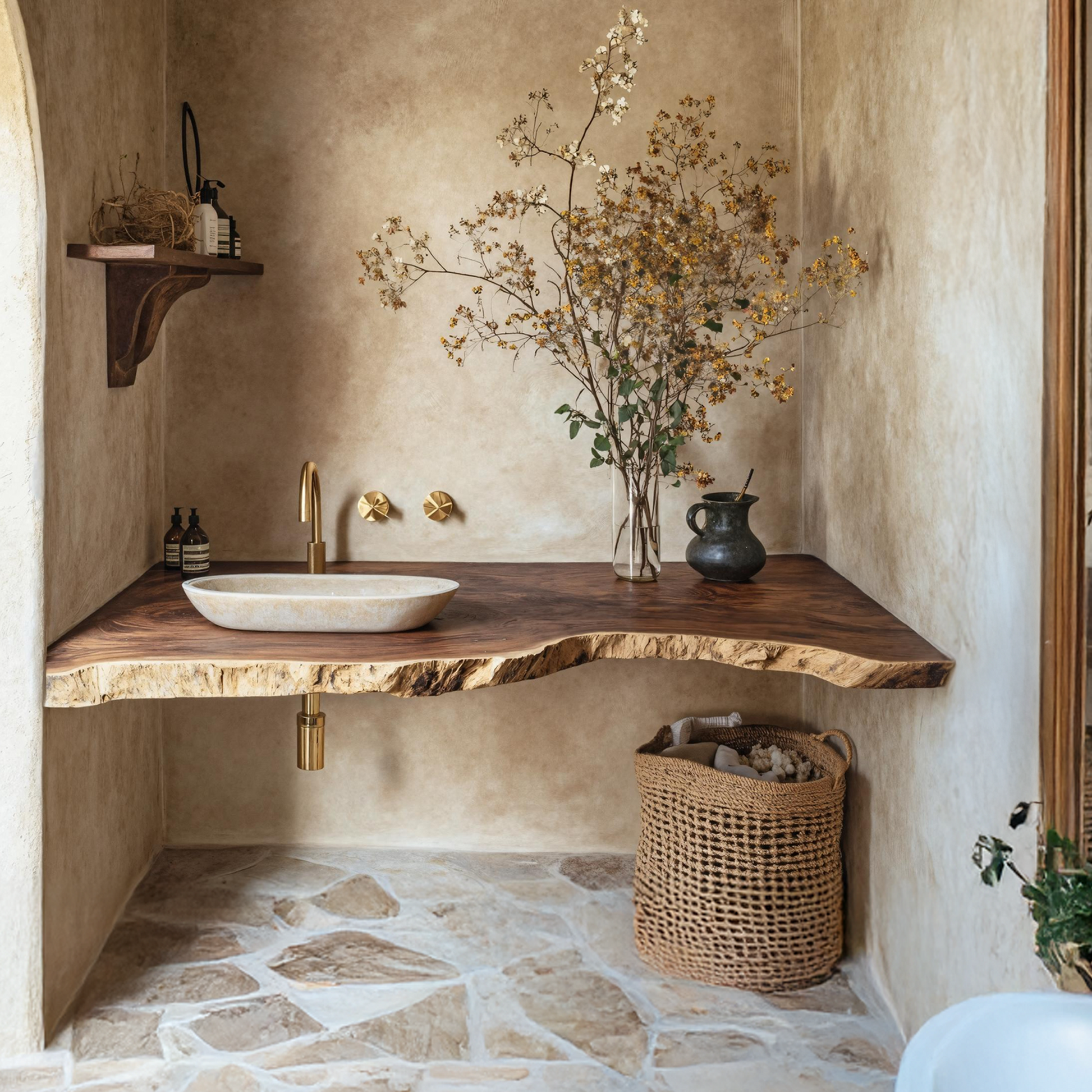 The live edge finish highlights the natural grain and character of the wood, creating a rustic yet elegant look. Each piece is designed to stand out as a unique focal point.