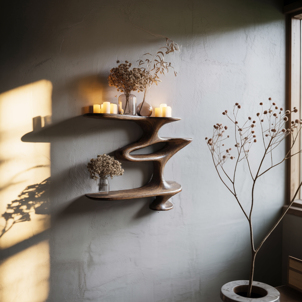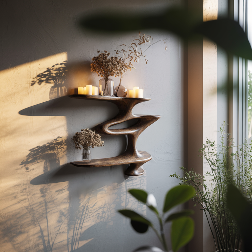 Add natural elegance to your space with this handcrafted piece made from solid wood. Featuring rich grain, organic edges, and a clean silhouette, the Mid Century Live Edge Wall Mount Shelf Living Room brings timeless style and practical charm to any interior.