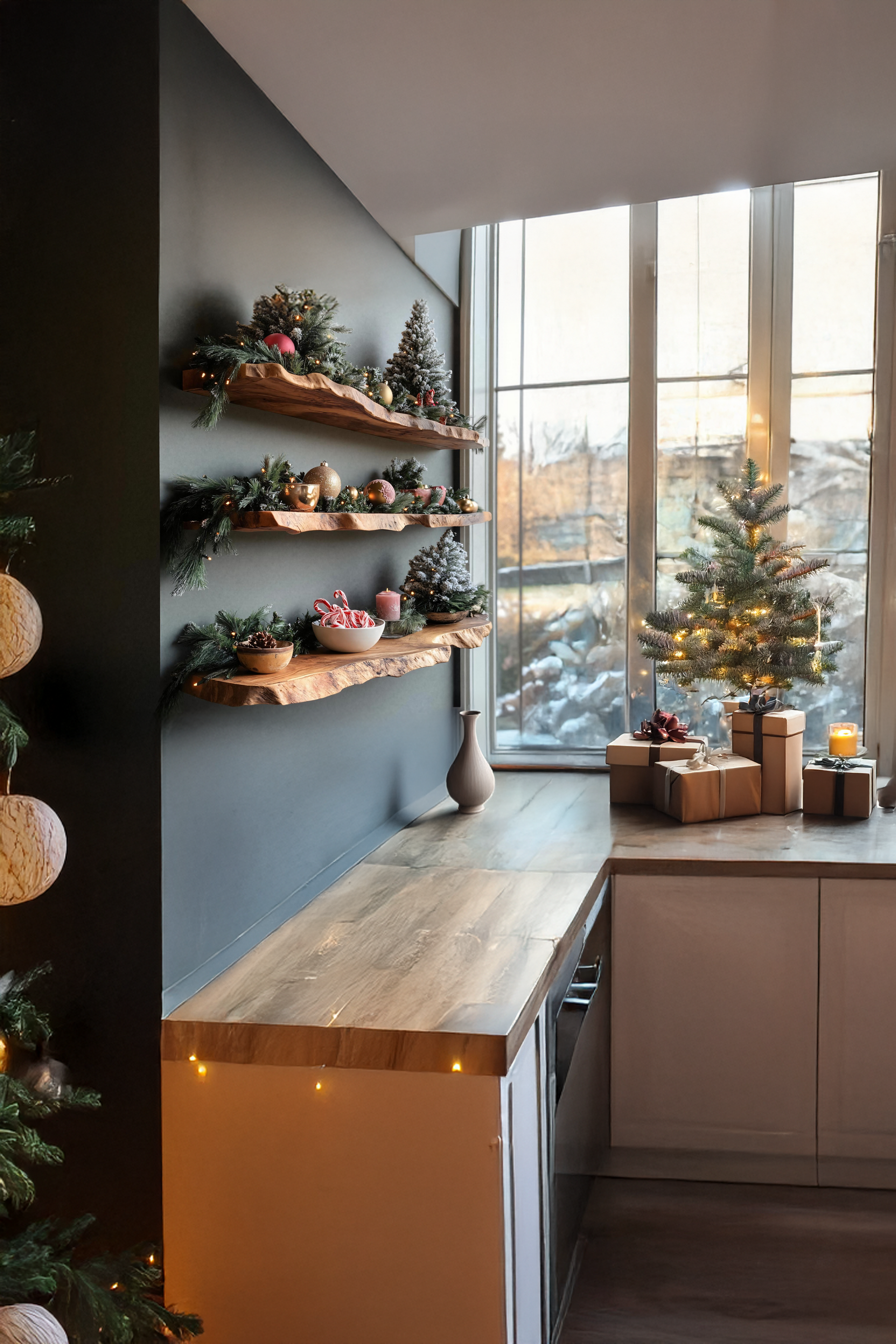 - Displaying ornaments, candles, or Christmas accents in the living room or entryway