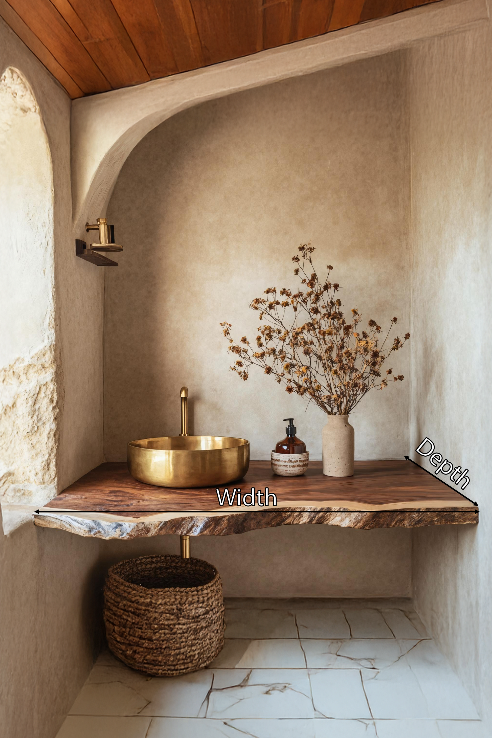 The live edge finish highlights the natural grain and character of the wood, creating a rustic yet elegant look. Each piece is designed to stand out as a unique focal point.