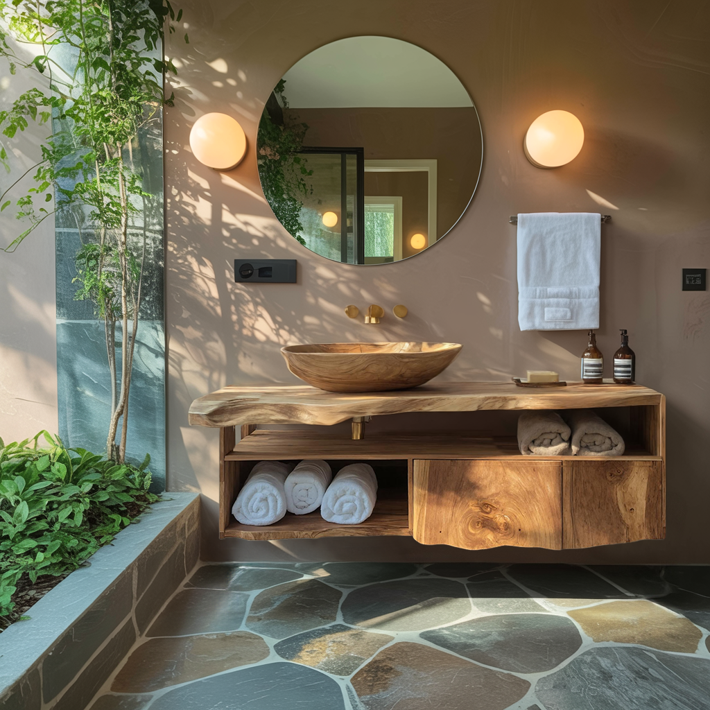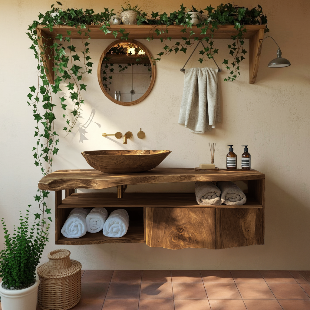 Revitalize your bathroom with our Handmade Wooden Bathroom Vanity, a perfect fusion of rustic charm and modern elegance. This vanity is thoughtfully designed to enhance both the style and functionality of your bathroom, making it a standout piece in any modern home.