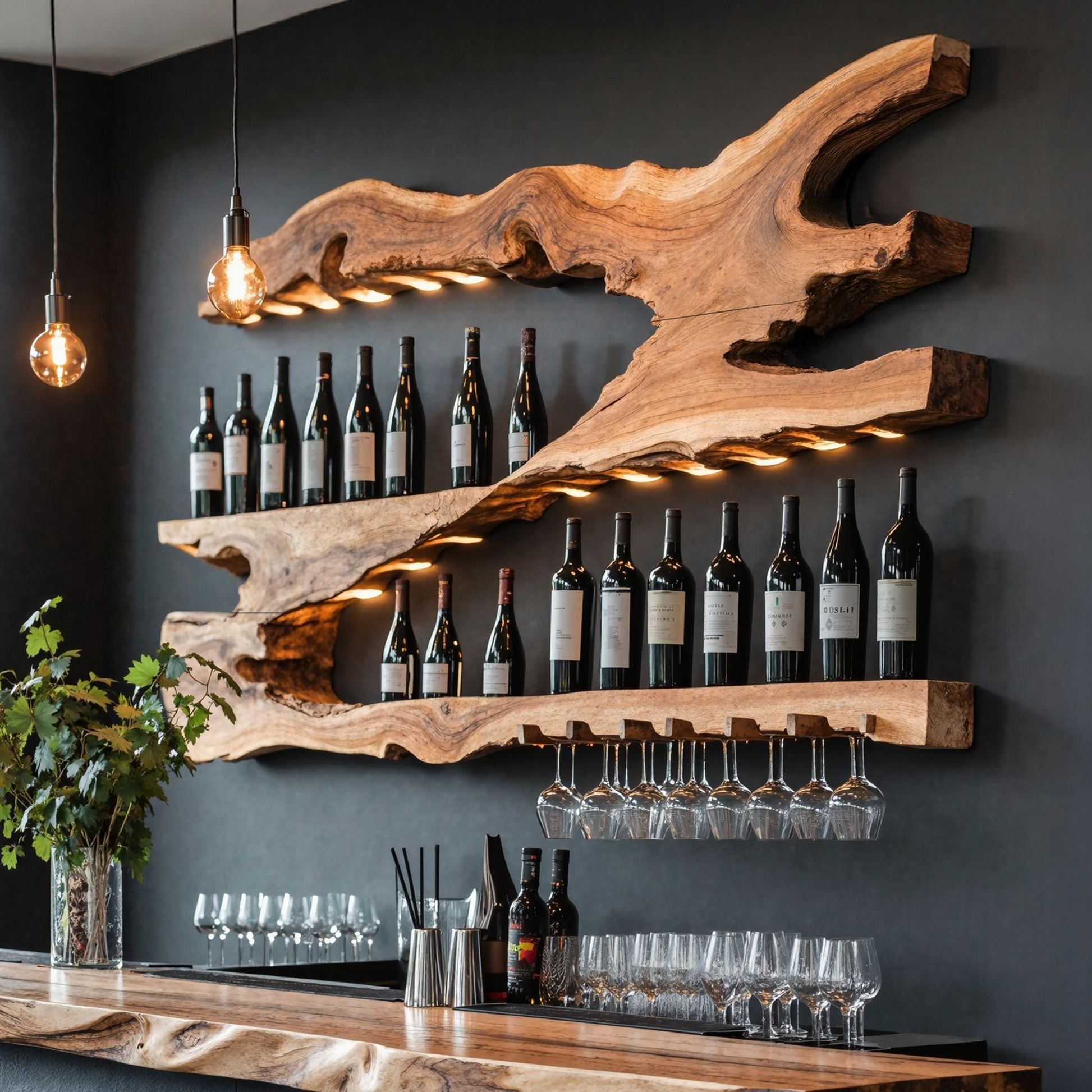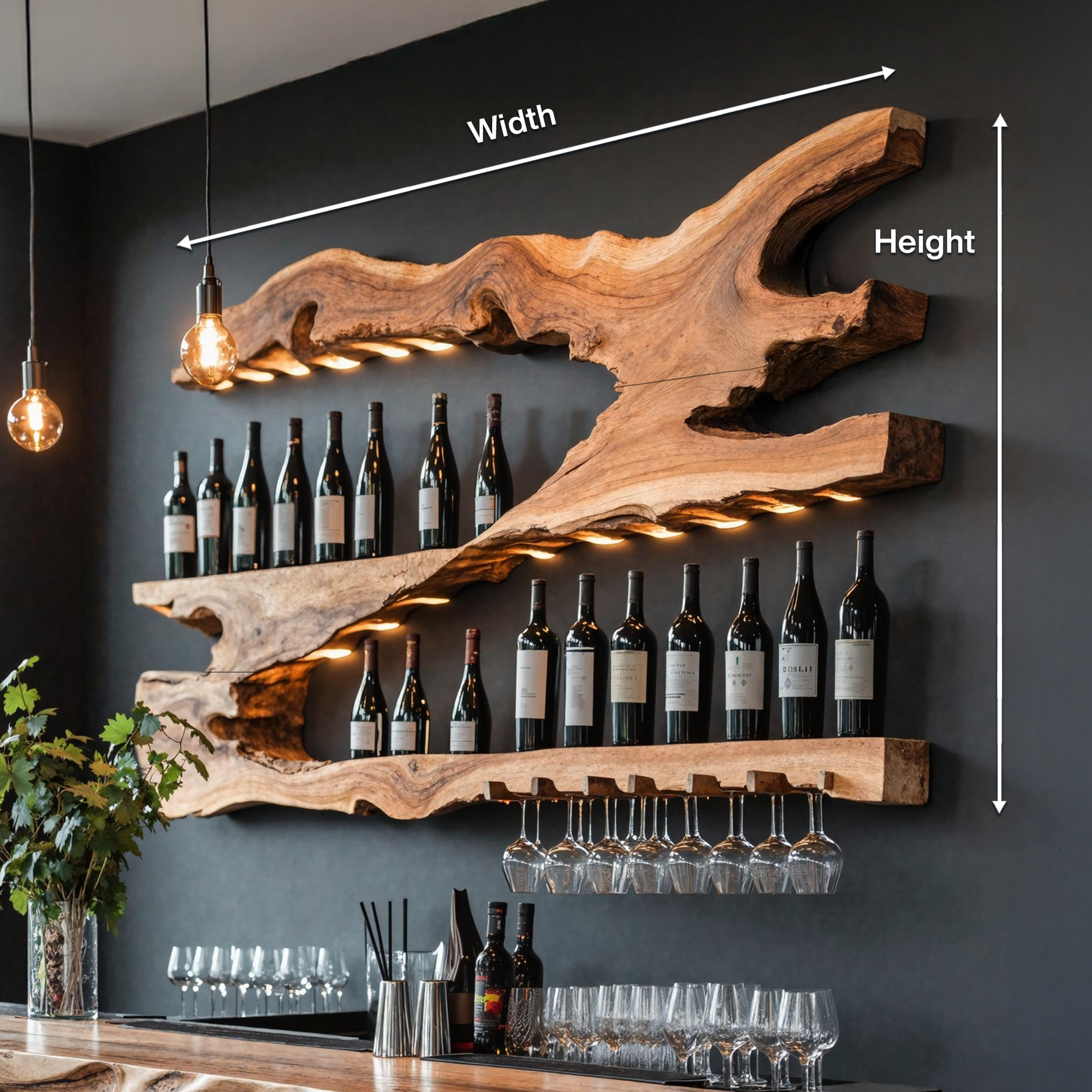 - Styled into a home bar for a warm, rustic accent