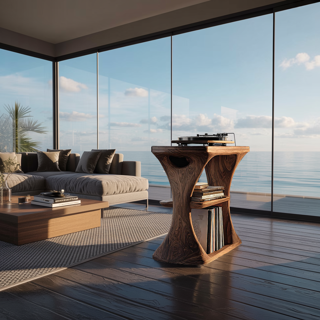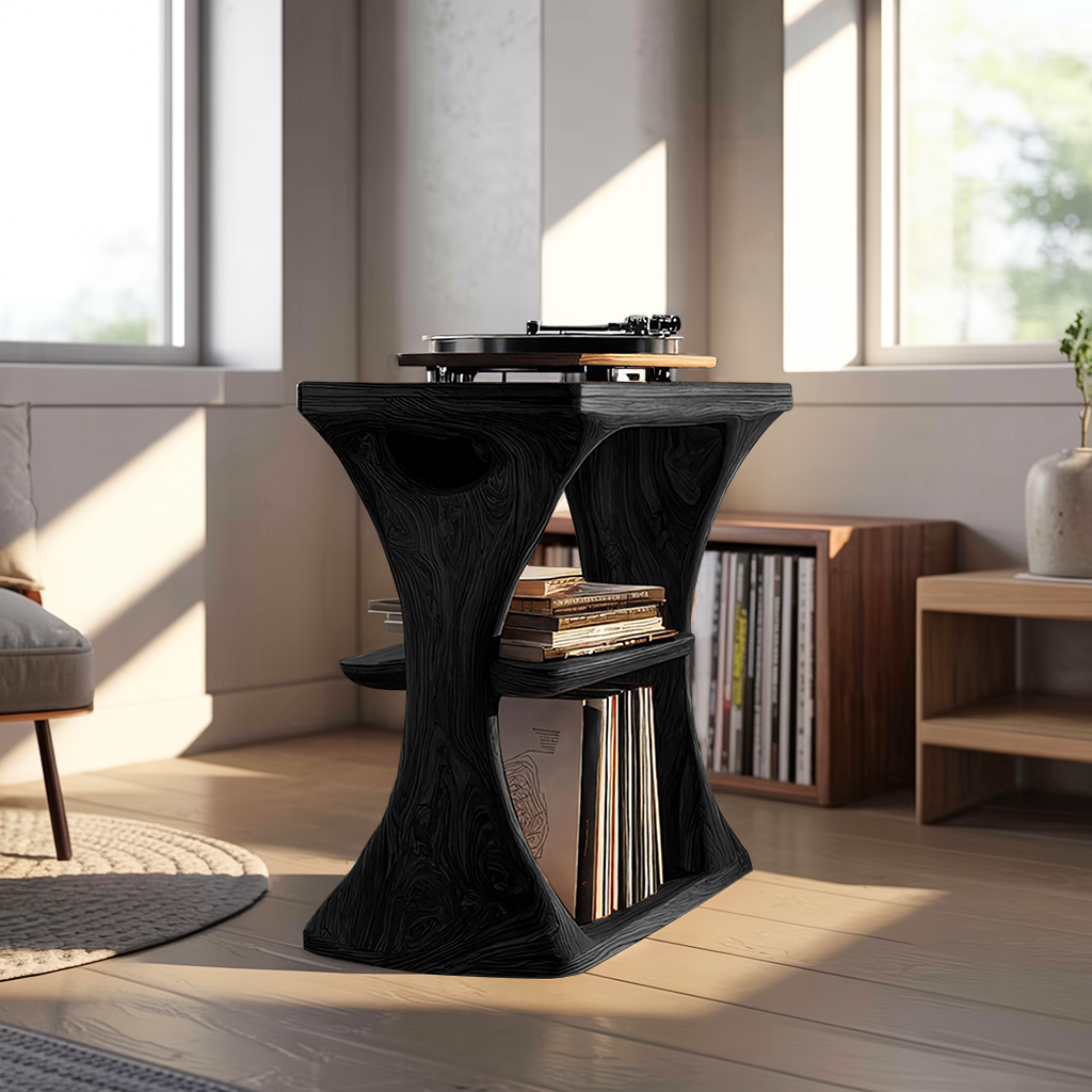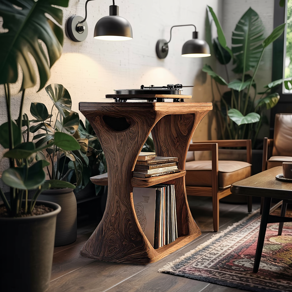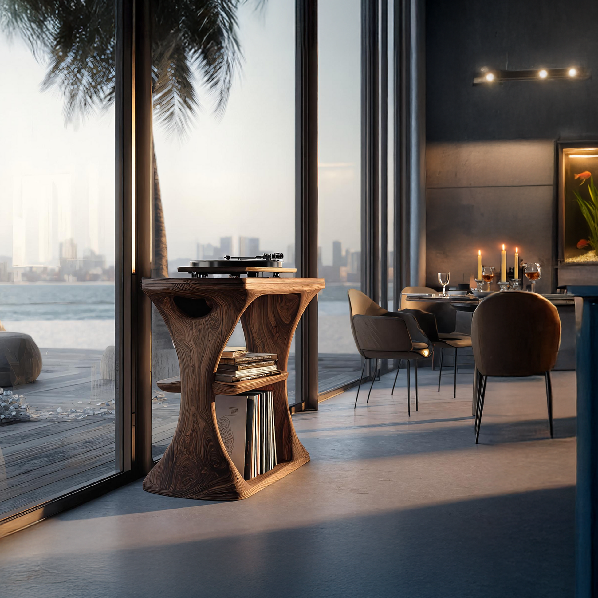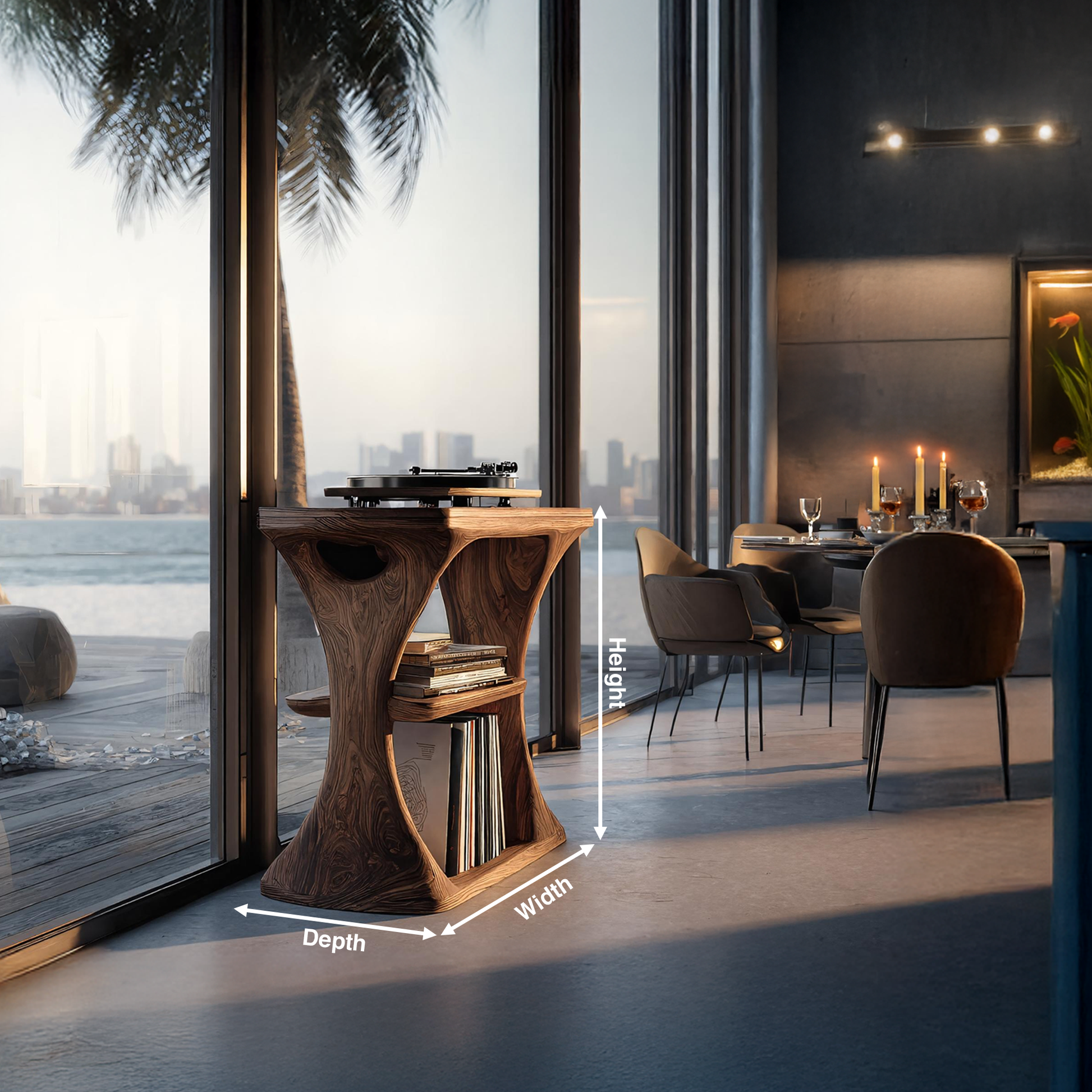 Crafted with a sleek, minimalist cube profile, this record stand enhances both modern and traditional interiors. The natural wood tones and unique grain patterns of each piece create a one-of-a-kind design, making it a stylish and functional addition to your space.