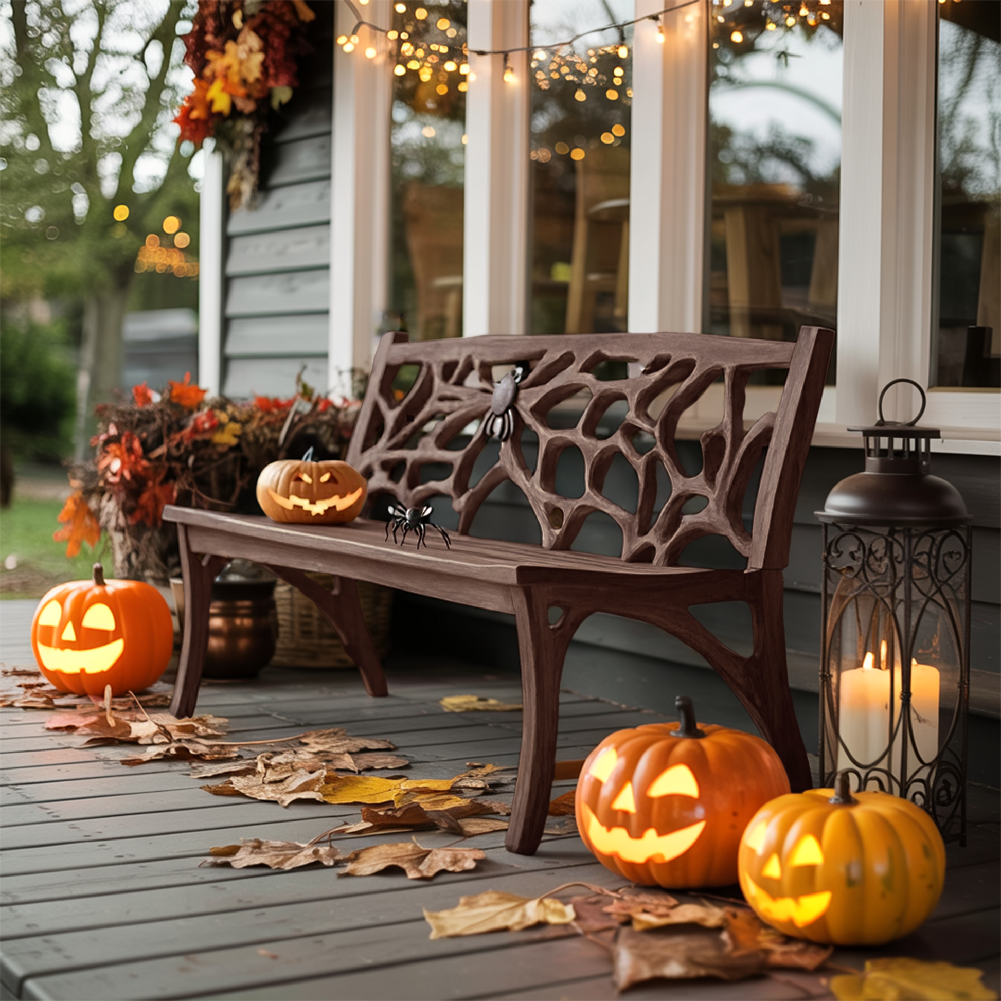 Designed to work beautifully indoors or outdoors, this bench provides seating and style in equal measure. Use it as a striking decorative piece for Halloween, a practical garden seat, or a cozy porch addition. Choose the finish and features that fit your space best—whether it’s a sturdy backrest for support or an armrest table for convenience.