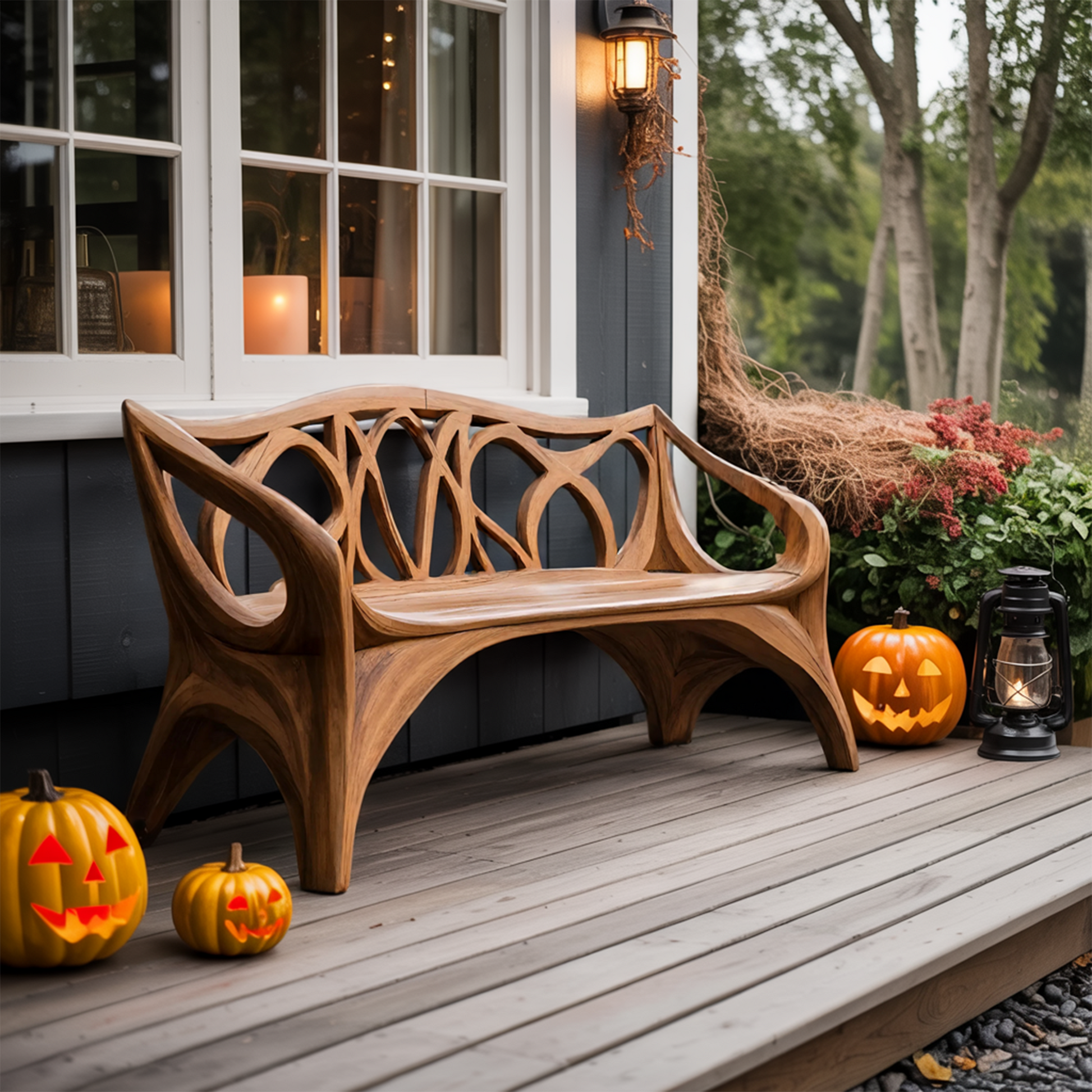 Designed to work beautifully indoors or outdoors, this bench provides seating and style in equal measure. Use it as a striking decorative piece for Halloween, a practical garden seat, or a cozy porch addition. Choose the finish and features that fit your space best—whether it’s a sturdy backrest for support or an armrest table for convenience.