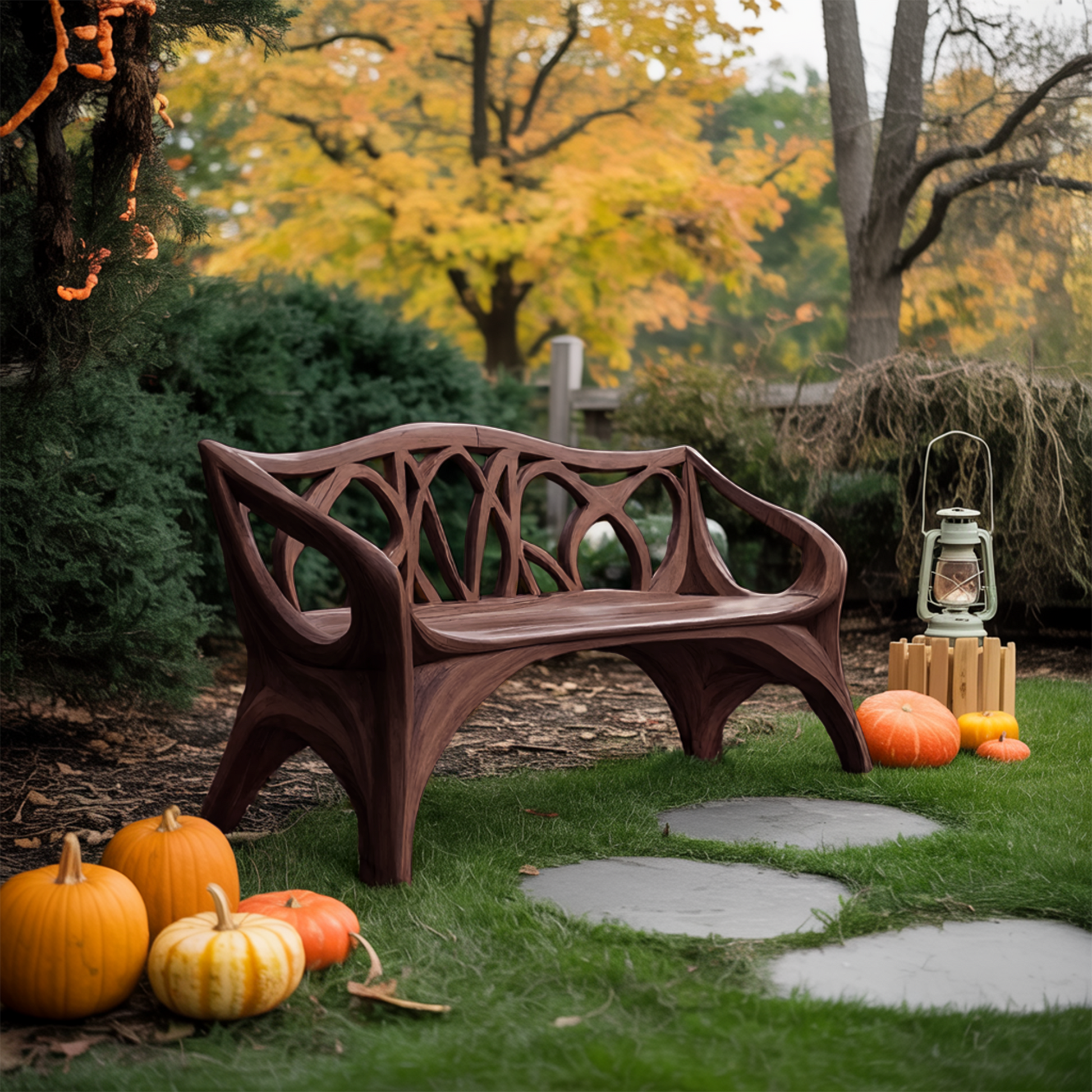 Celebrate the Halloween spirit with a bench that highlights the natural character of wood. Each piece features distinctive knots, live edges, and organic patterns, making your bench truly one of a kind. Its seasonal charm and artisanal details turn your porch or entryway into a warm, inviting space for fall celebrations.