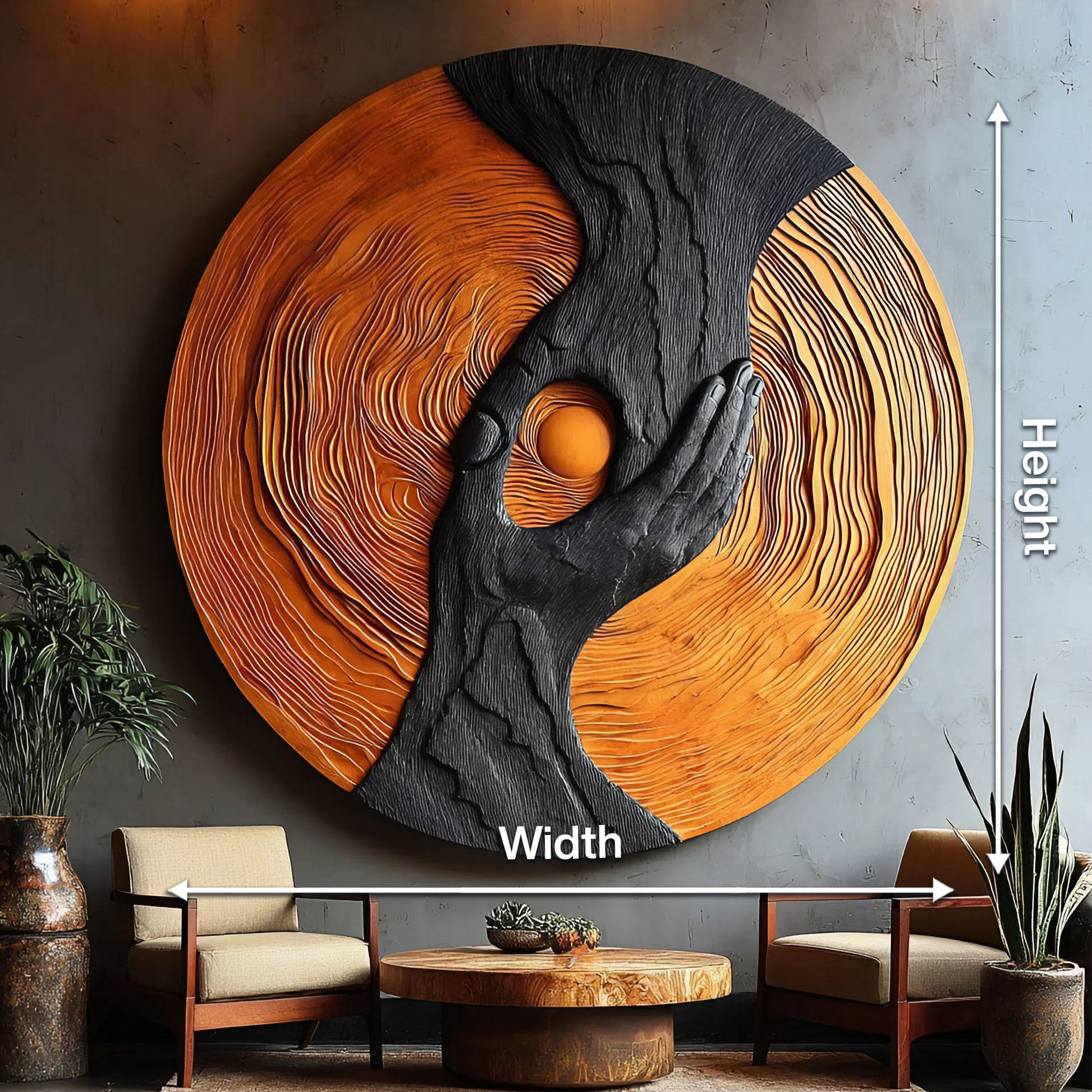 This wall-mounted sculpture blends fluid, organic contours with minimalist elegance. Hand-carved from solid hardwood, the rhythmic folds resemble ocean tides frozen in motion. The golden-toned wood grain is accentuated by deep charcoal edges, creating a striking interplay of warmth and contrast. Designed with a hidden mount, the piece floats seamlessly against your wall, enhancing its sculptural presence.