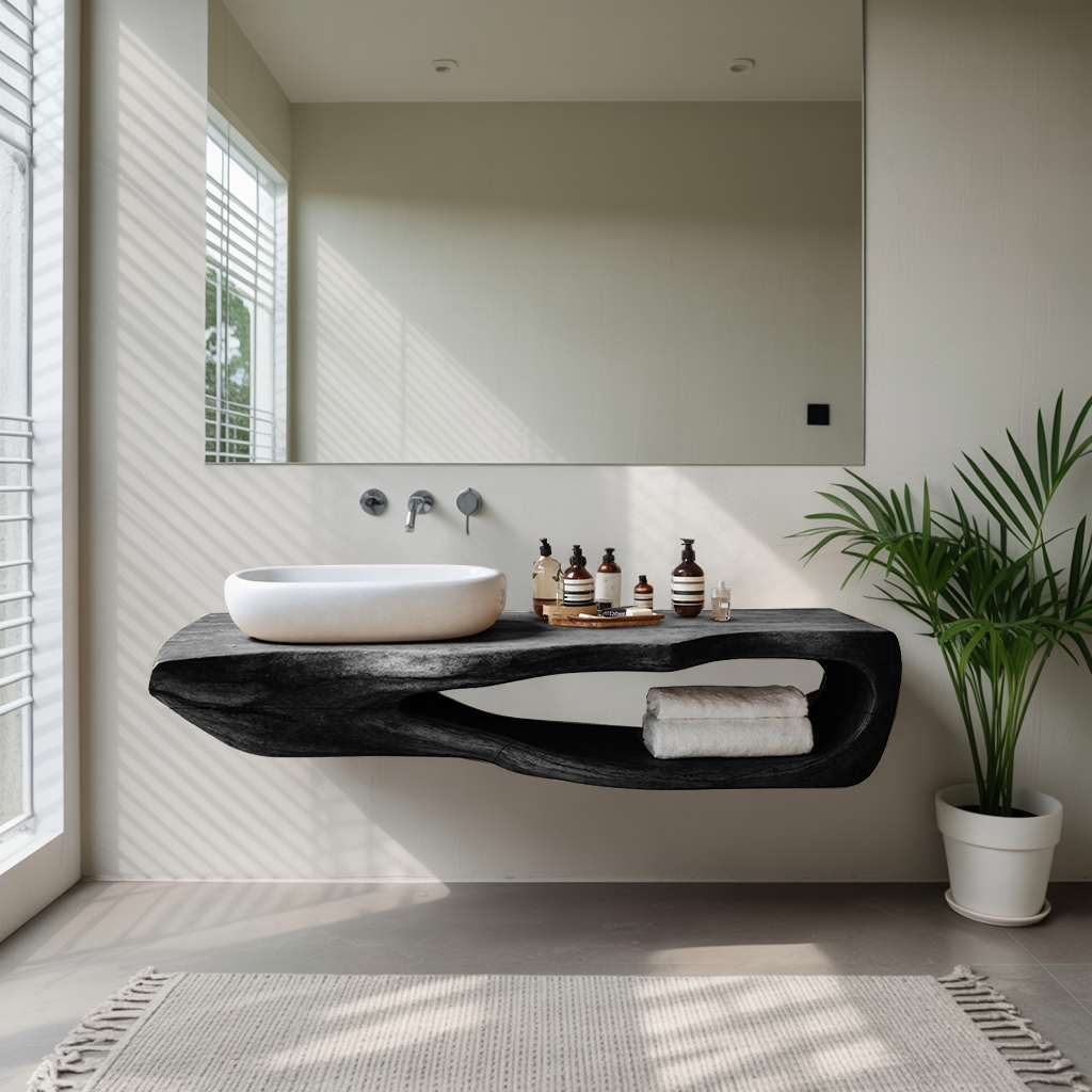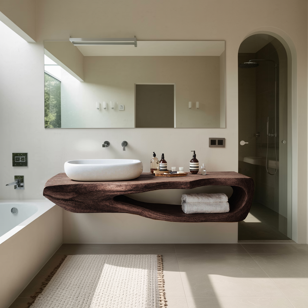 Transform your bathroom with our Handmade Wooden Vanity, merging rustic charm with modern elegance for a perfect balance of style and utility. This vanity integrates rustic details with a contemporary design, making it the ideal fit for any bathroom decor.