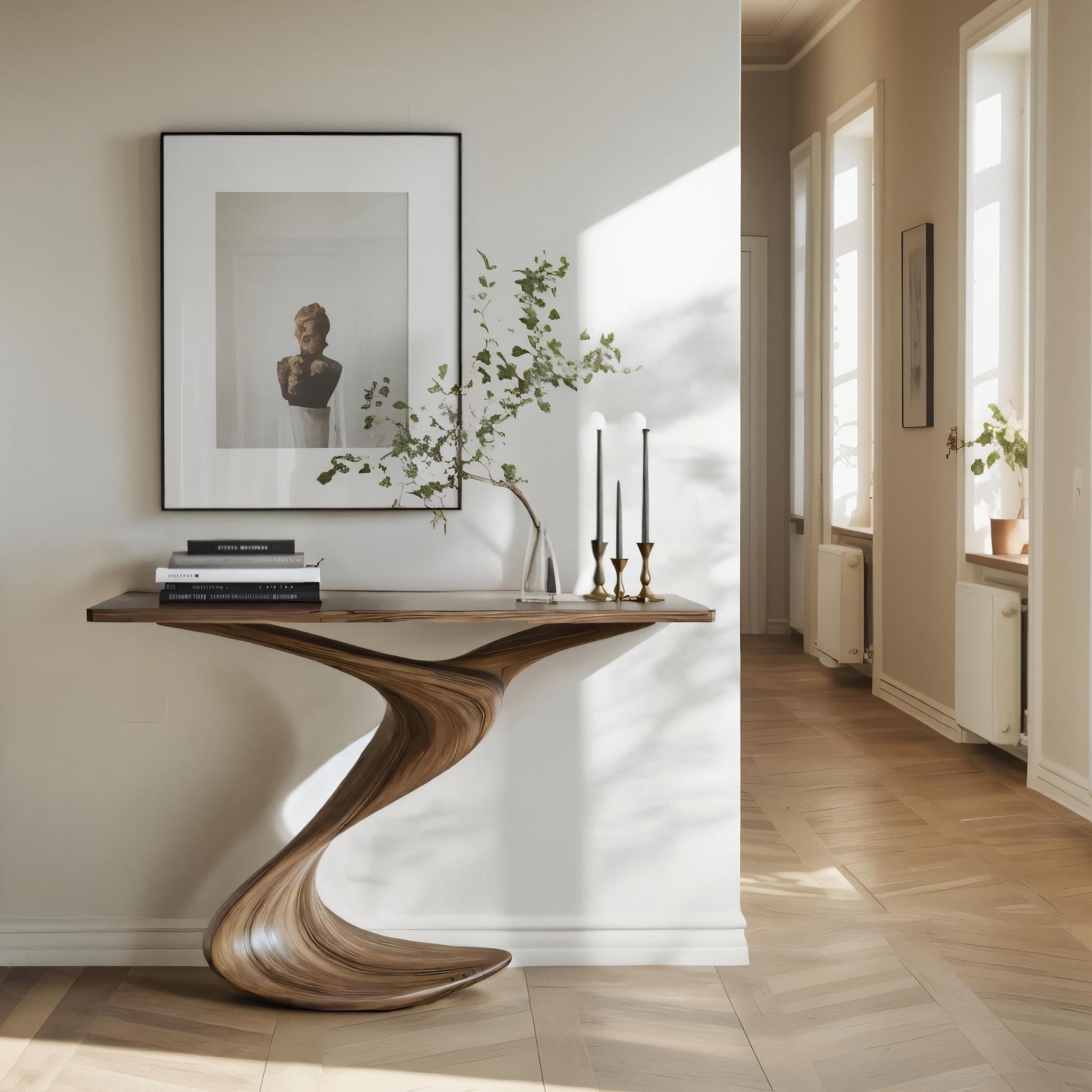 Crafted from premium solid wood, each console table highlights the organic elegance of natural materials. Please note that the wood grain variations depicted in the images are for reference only, as each table is one-of-a-kind with its own distinct grain and pattern. This individuality ensures you’re investing in a truly unique piece of furniture that adds a personal touch to your home.