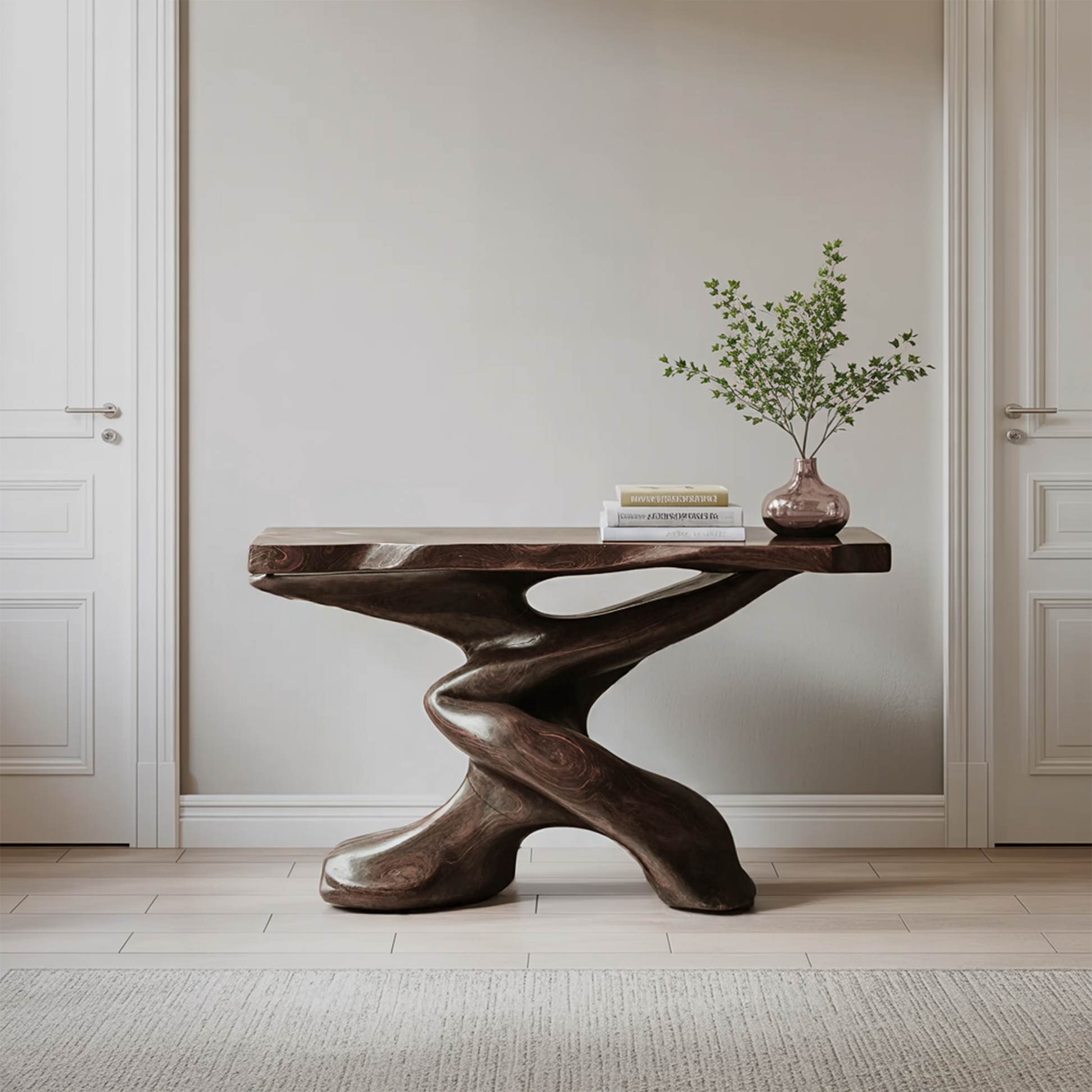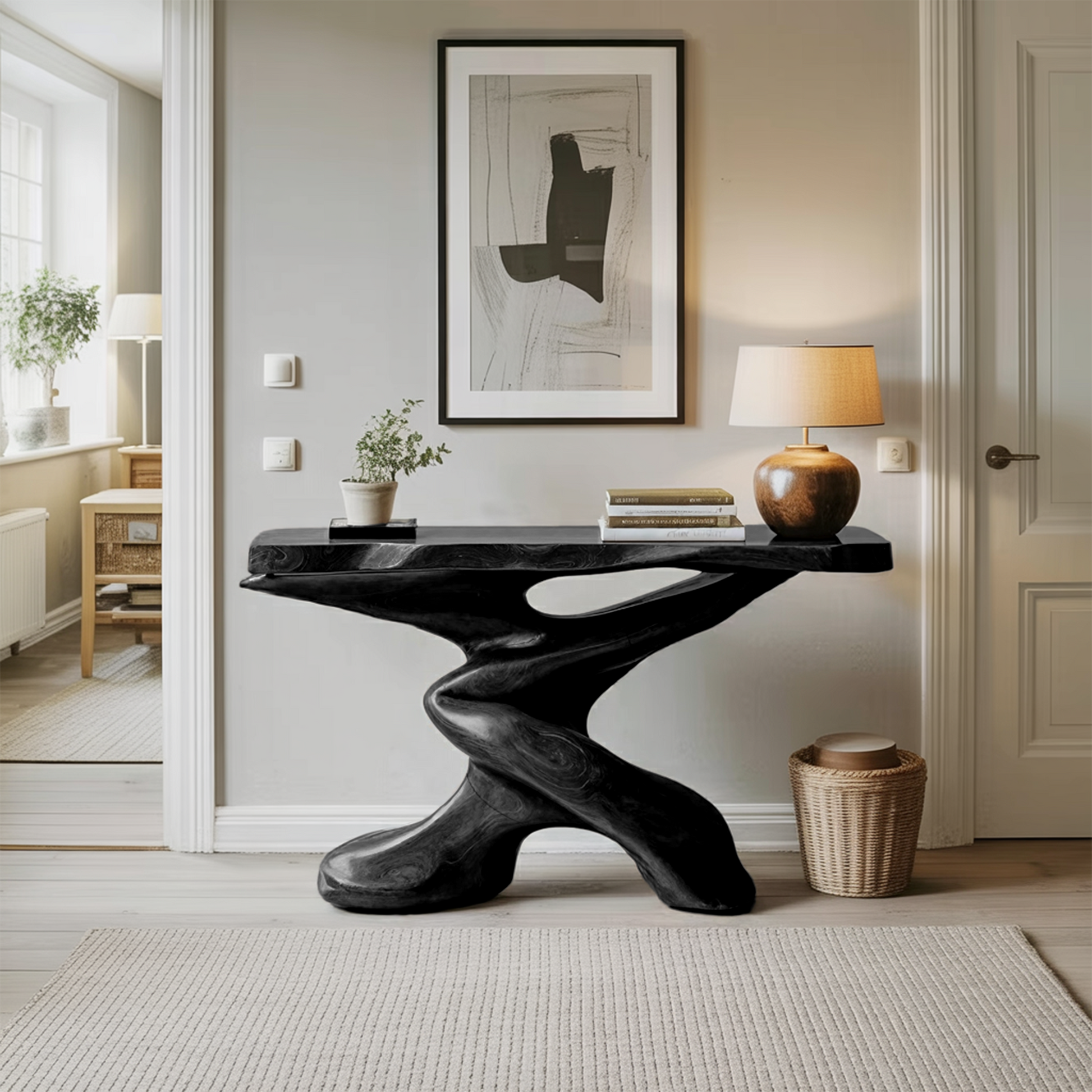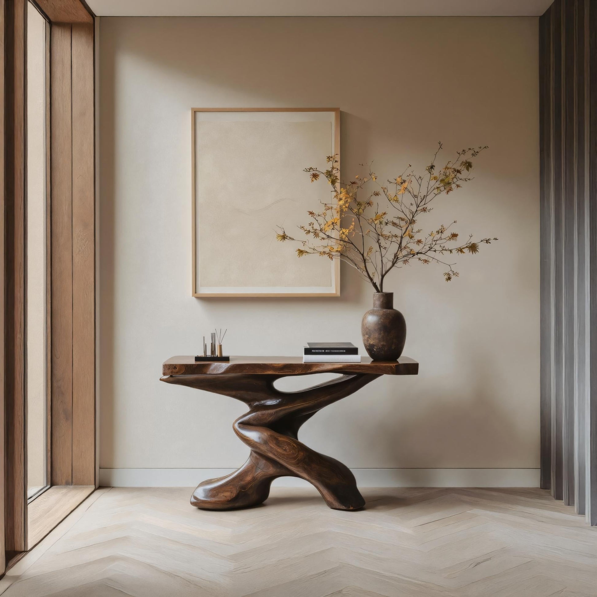 Crafted from premium solid wood, each console table highlights the organic elegance of natural materials. Please note that the wood grain variations depicted in the images are for reference only, as each table is one-of-a-kind with its own distinct grain and pattern. This individuality ensures you’re investing in a truly unique piece of furniture that adds a personal touch to your home.