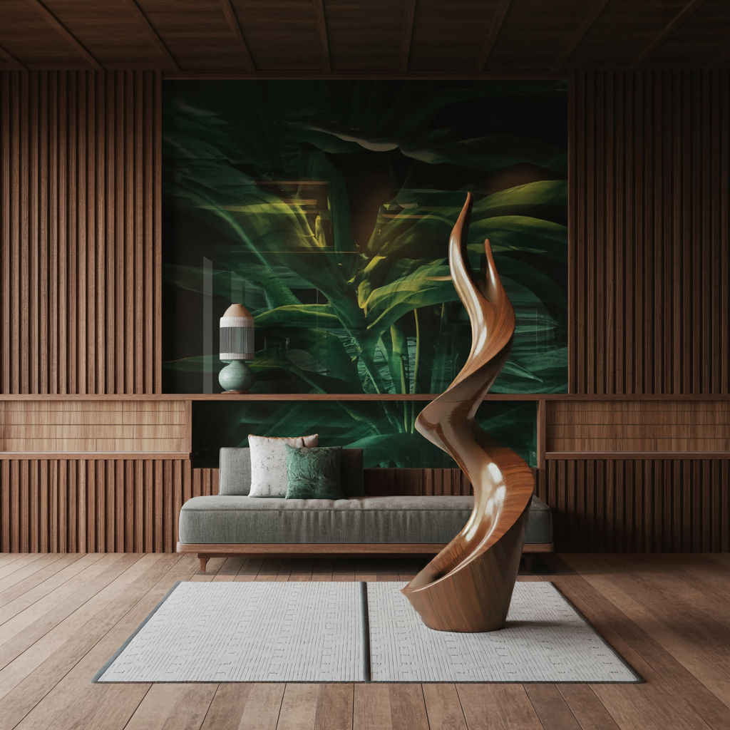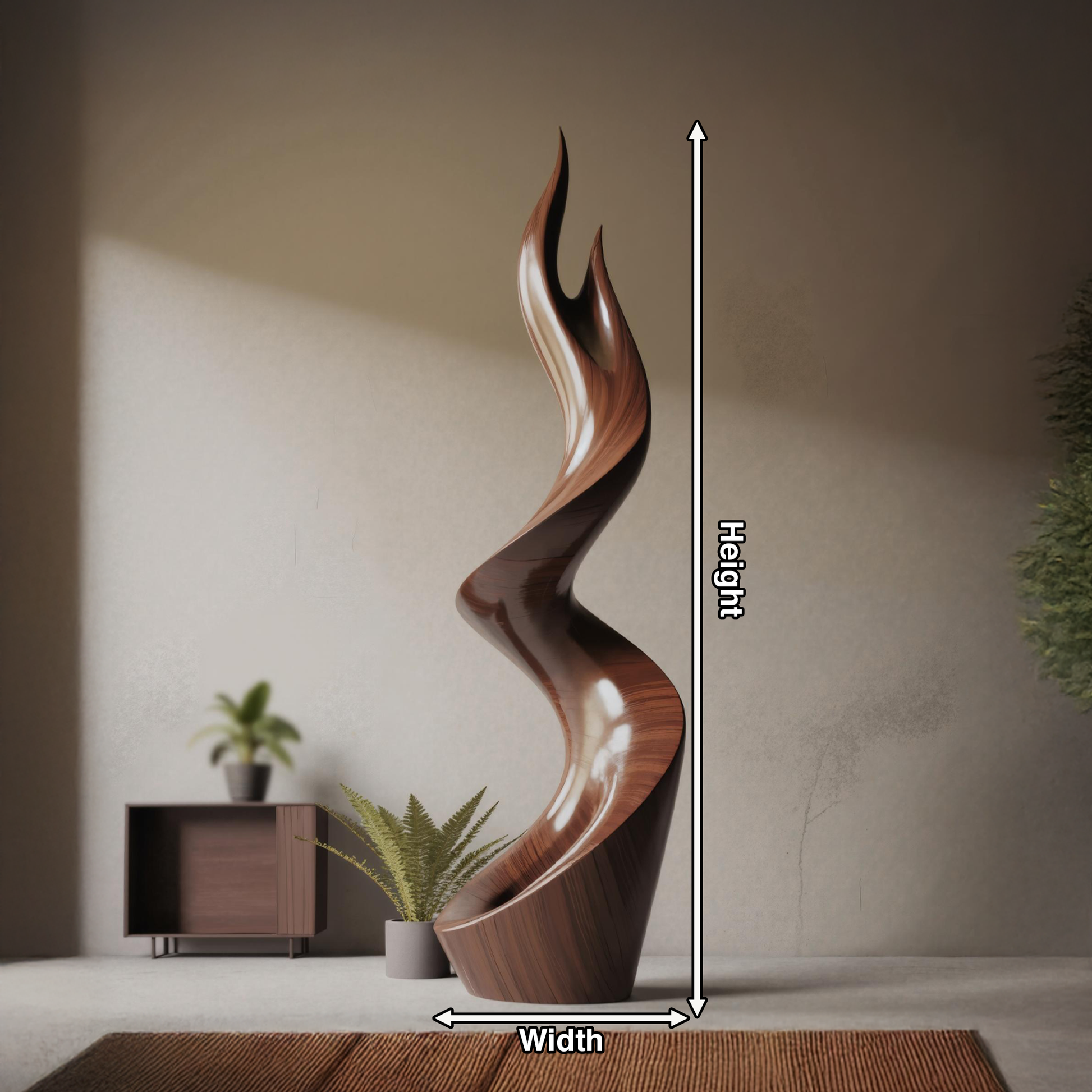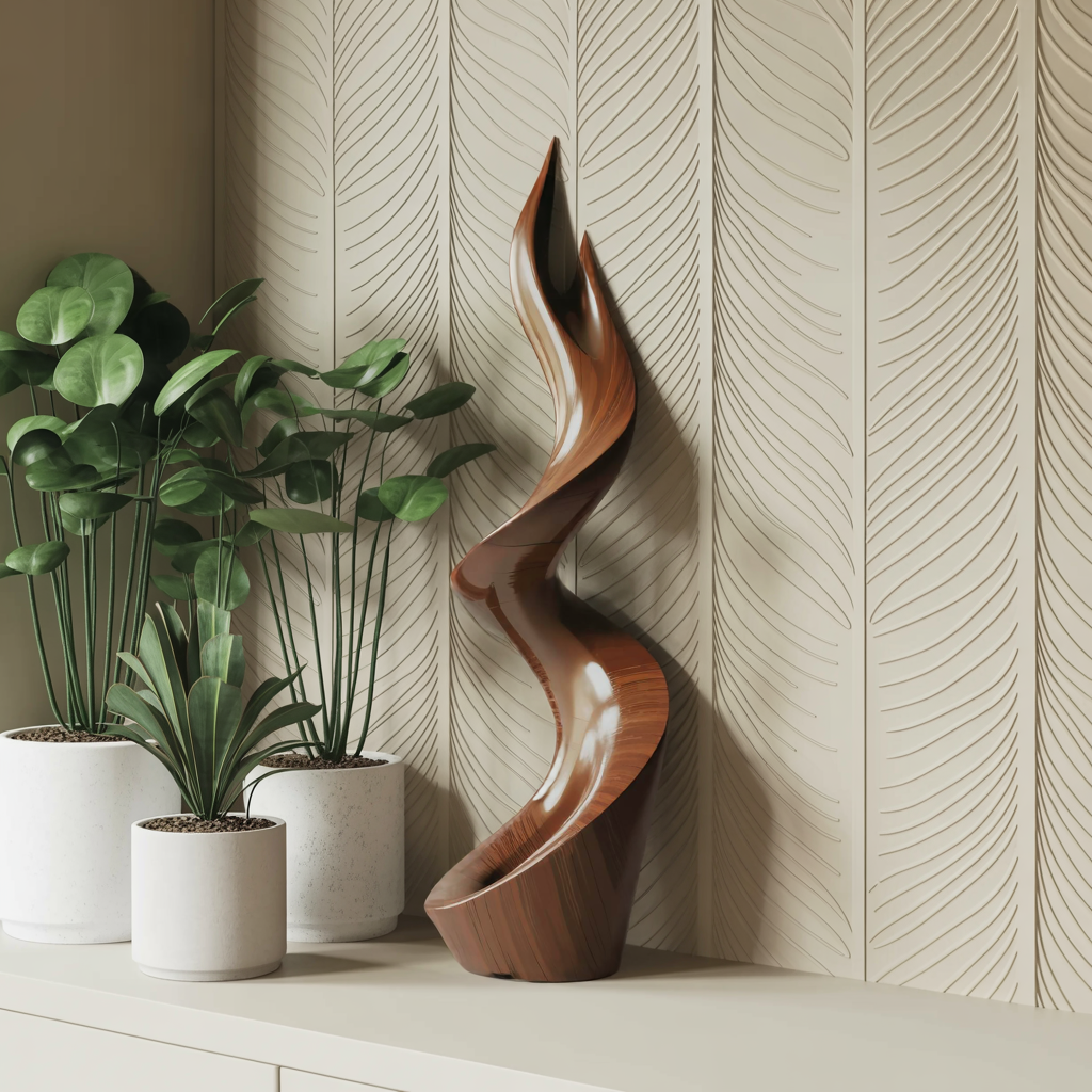 Inspired by the flowing movement of flames and the organic forms found in nature, this abstract wooden sculpture is more than just décor - it’s a visual statement. Its fluid, twisting curves evoke motion and harmony, creating a sense of energy that subtly transforms any space. Whether used as a focal point or an accent piece, it brings life and depth to minimalist, modern, and contemporary interiors.