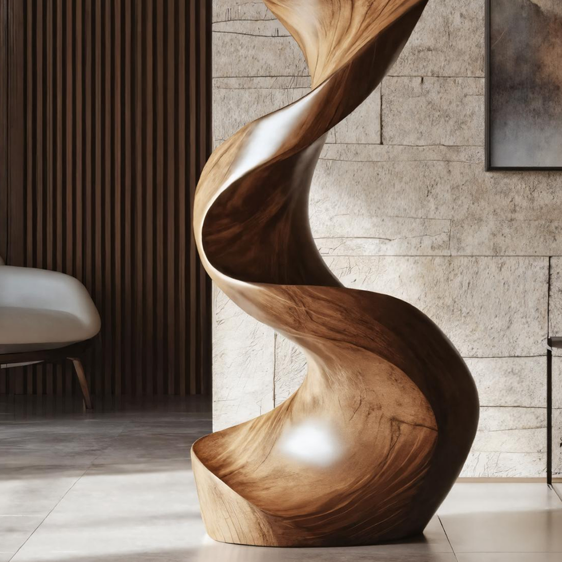 Inspired by the flowing movement of flames and the organic forms found in nature, this abstract wooden sculpture is more than just décor - it’s a visual statement. Its fluid, twisting curves evoke motion and harmony, creating a sense of energy that subtly transforms any space. Whether used as a focal point or an accent piece, it brings life and depth to minimalist, modern, and contemporary interiors.