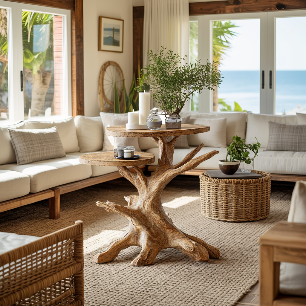 The Rustic Live Edge End Table Entryway Design captures the organic beauty of solid wood, enhanced by its distinctive live-edge detailing and expert craftsmanship. With a warm finish and natural charm, it adds character and functionality to your entryway, serving as both a decorative highlight and a useful surface for everyday needs.