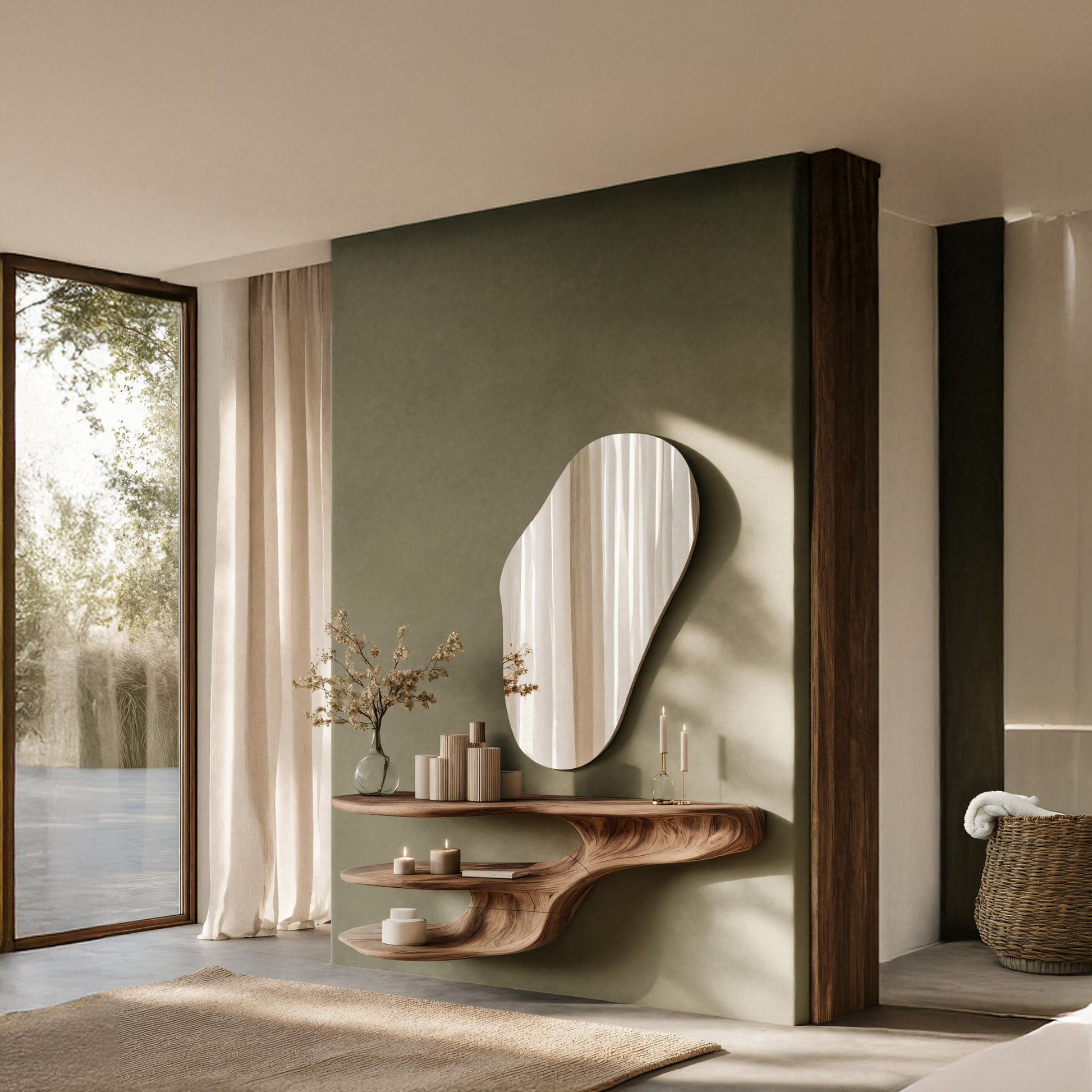 Note: The product includes only the wooden vanity table. Mirror, shelves, plants, and other accessories are not included. Once shipped, you will be notified.