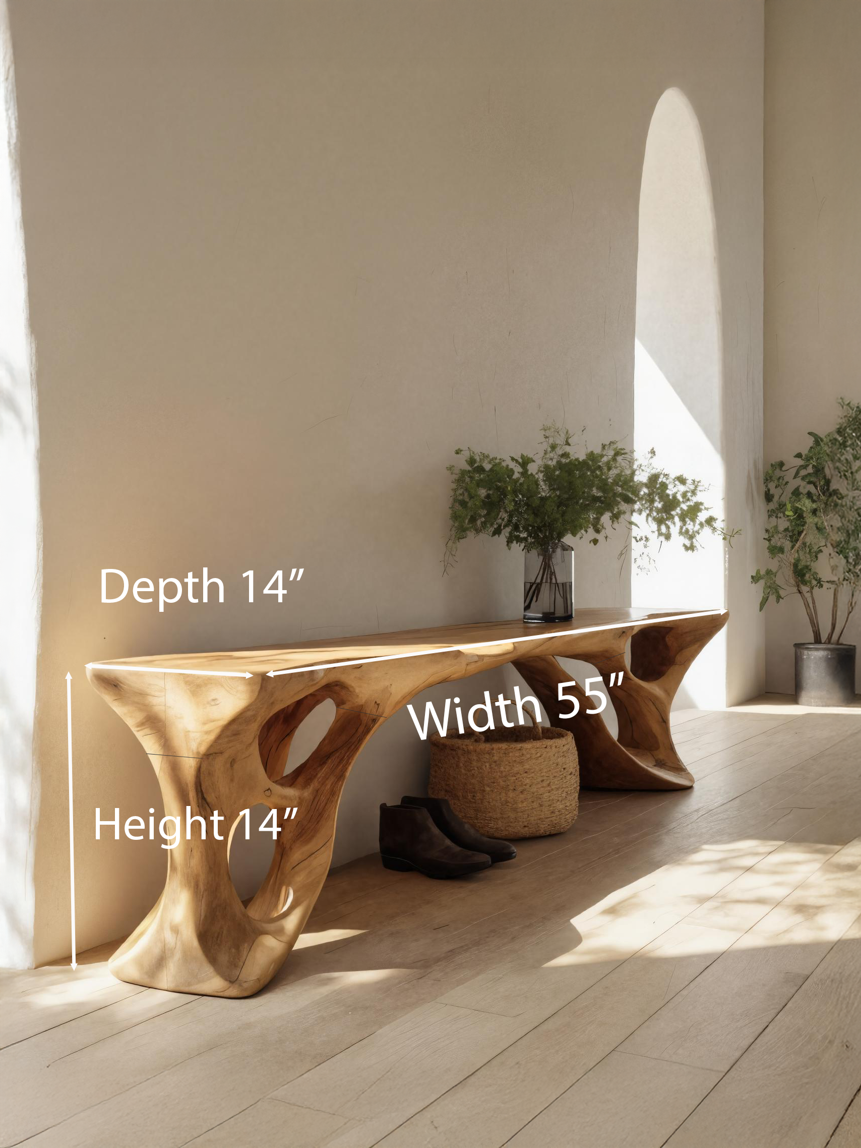 Add sculptural elegance to your home with our Sculptural Bench With Carved Design For Entryway, crafted to merge organic artistry with everyday function. Its fluid silhouette and carved openings bring lightness and visual rhythm, transforming a simple bench into a striking statement piece.